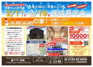 三田市天神付近にてお客様宅「完成見学会」を開催いたします!