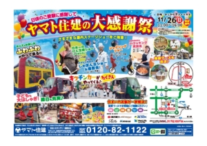イベント 2023年11月26日(日)11:00~16:00 <参加無料>「ヤマト住建の大感謝祭」開催!(鈴蘭台店) 【住まいのギャラリー鈴蘭台店】 「ヤマト住建の大感謝祭」開催! キッチンカーやイベント・物販ブースなど…… 開催:住まいのギャラリー鈴蘭台店 詳しくはこちら