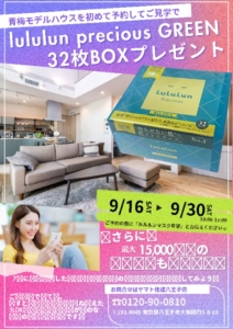 イベント 2023年9月16日(土)~9月30日(土) 「青梅モデルハウス見学予約でlululun precious GREENをプレゼント!」(八王子店) 【住まいのギャラリー八王子店/八王子住宅展示場】 lululun precious GREENをプレゼント! さらに最大15,000円分のAmazonギフト券も…… 開催:住まいのギャラリー八王子店/八王子住宅展示場 詳しくはこちら