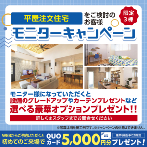 限定3棟!平屋住宅をご検討の方へ向けた特別モニターキャンペーンです!