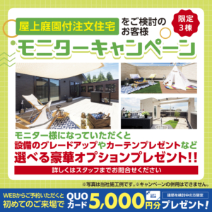 限定3棟!屋上庭園付き住宅をご検討の方へ向けた特別モニターキャンペーンです!