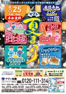 イベント 2024年8月25日(日)17:30~19:30 「ヤマト夏まつり」開催!(和歌山店) 【住まいのギャラリー和歌山店】 ヤマト夏まつり開催! 参加無料!当日参加OK…… 開催:住まいのギャラリー和歌山店 詳しくはこちら