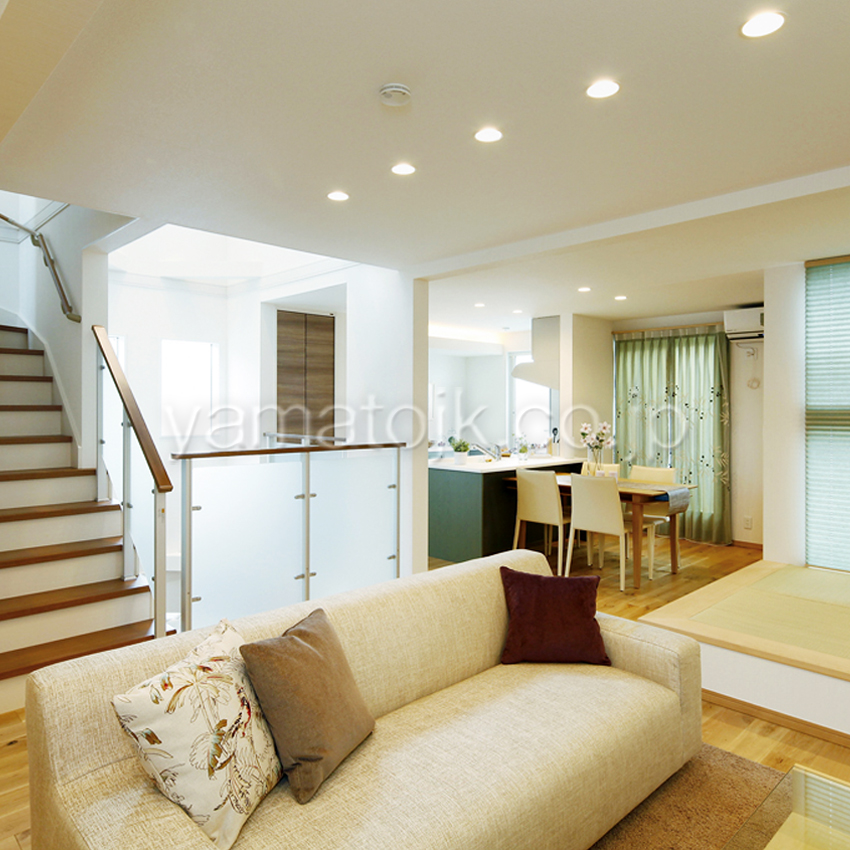 ダブルロフトへと続く、スキップフロアの家 2階建て 40~50坪 #スキップフロア #ママ目線 家事動線 #ロフト #中庭・テラス #収納にこだわり #吹き抜け・高天井 #屋上庭園 #無垢材 詳しくはこちら