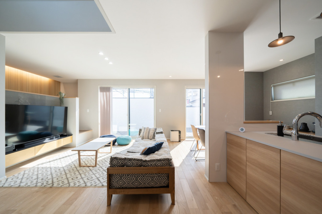 約19帖のLDKと繋がるウッドデッキ。部屋を開放的に見せることができ、第2のリビングとして、外での食事も楽しめます。