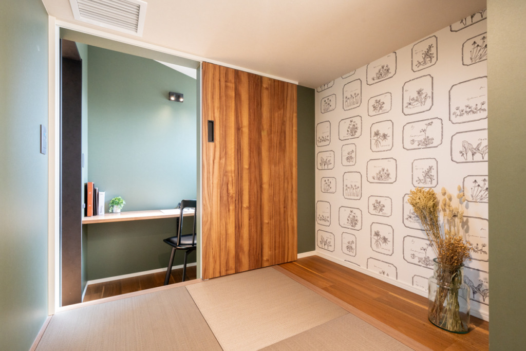 主寝室奥の書斎近くには、秘密基地のようなステップインロフトも。趣味のスペースや、集中したいときに使える場所です。