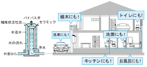 毎日使う水だからこそ、綺麗な水で生活してほしい。水道引き込みの部分で浄活水化することにより、人が暮らしていく上で欠かせない生活用水すべてを理想的な水にします。お料理はもちろん、お風呂やお洗濯、ガーデニングなど、生活のあらゆる場面で水の違いを感じていただけます