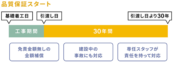 ヤマト住建ではお客様の大切なお住まいを不同沈下から守るため、地盤解析No.1の実績を持つジャパンホームシールド株式会社と提携し、お引き渡し日から30年間品質保証が受けられるシステムを導入しています。