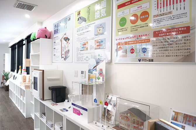 音漏れや結露、外気温をシャットアウトする高性能住宅を体感できる「体感コーナー」。断熱性の高い樹脂サッシ・地震から家族を守る制振装置などヤマト住建の家づくりの秘密が展示されています。外張り断熱の違いなど、はじめは見るだけ聞くくだけで大歓迎!お客様のへ注文住宅のご要望をお聞かせください。