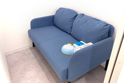 お打ち合わせ中も赤ちゃんと一緒のママが快適にお過ごし頂けるよう、おむつ交換のためのスペースも。ミルク用のお湯や交換用オムツもサイズ別にご用意しています。お気軽にスタッフまでお申しつけください。
