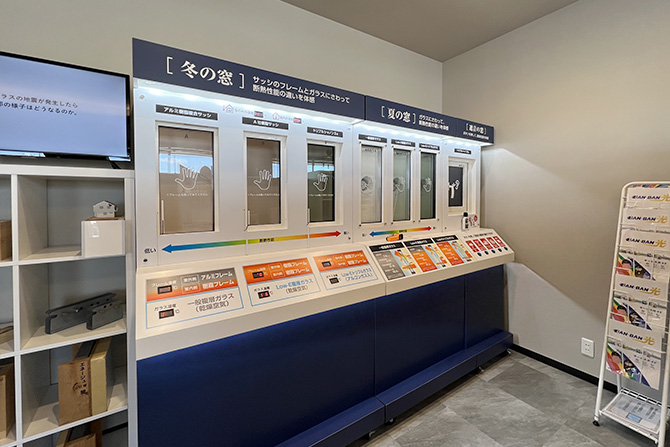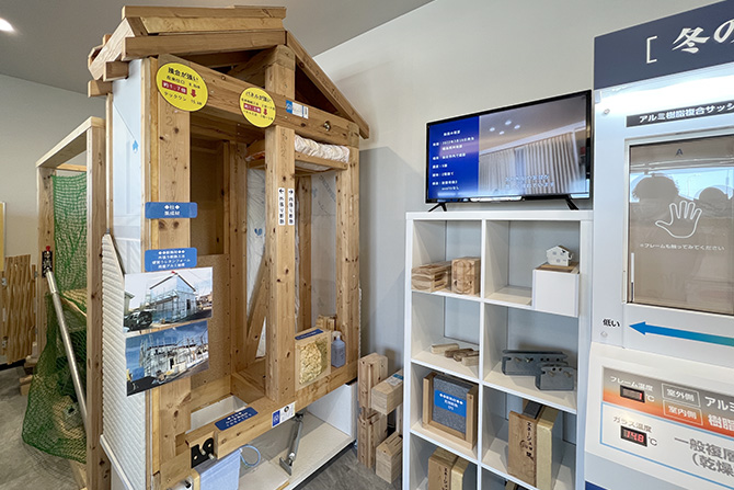 音漏れや結露、外気温をシャットアウトする高性能住宅を体感できる「体感コーナー」。断熱性の高い樹脂サッシ・地震から家族を守る制振装置などヤマト住建の家づくりの秘密が展示されています。家づくりを考えはじめたばかりのお客様にも楽しくわかりやすくご説明させて頂きます。 外張り断熱の違いなど、はじめは見るだけ聞くくだけで大歓迎!お客様の注文住宅へのご要望をお聞かせください。