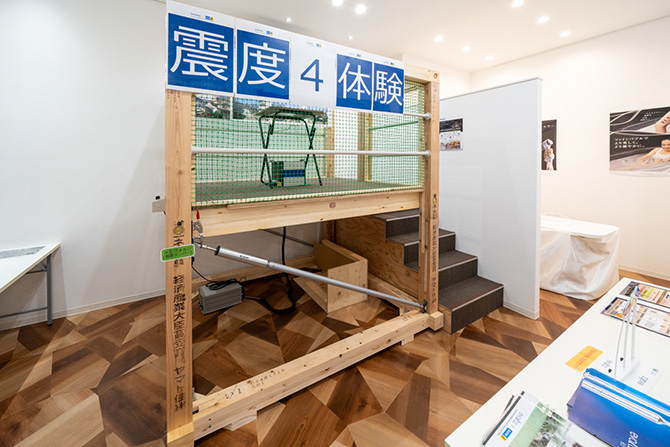 ヤマト住建の住まいは『耐震等級3(最高等級)+制振ダンパー』で、地震に強くしなやかに揺れを吸収する住宅です。地震の揺れを実際に体験していただけるブースも設置しております。大切な家族を守る住まいの性能をぜひご覧になってください。