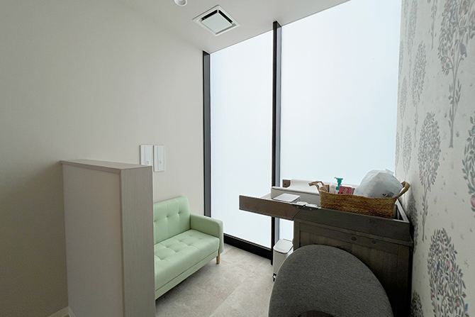 お打ち合わせ中も赤ちゃんと一緒のママが快適にお過ごし頂けるよう、おむつ交換のためのスペースも。ミルク用のお湯もございます。お気軽にスタッフまでお申しつけください。