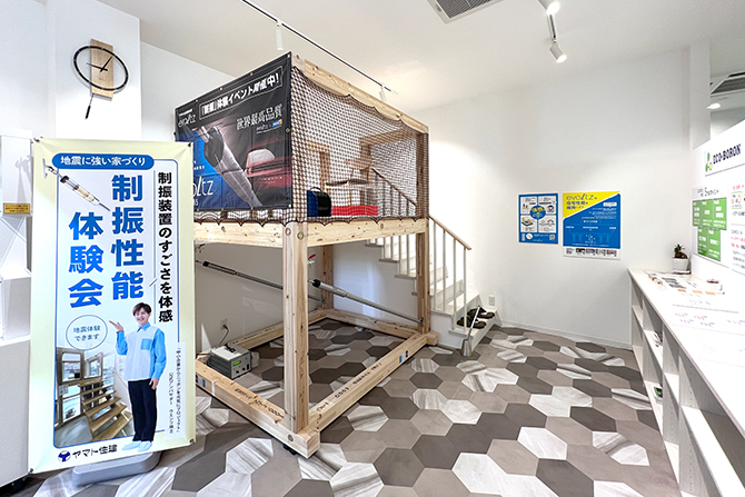 ヤマト住建の住まいは『耐震等級3(最高等級)+制振ダンパー』で、地震に強くしなやかに揺れを吸収する住宅です。地震から家族を守る制振装置など地震の揺れを実際に体験していただけるブースも設置しております。大切な家族を守る住まいの性能をぜひご覧になってください。