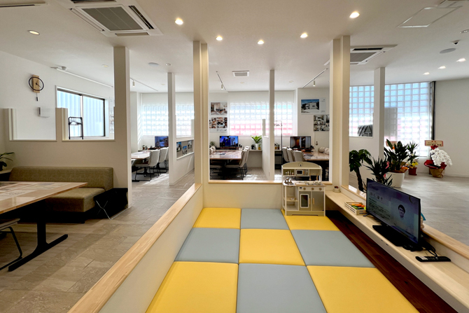 家づくりのお打ち合わせは資金計画や間取りなど、大切な内容ばかりです。長時間のお打ち合わせでもお子様が疲れてしまわないよう、お席のすぐそばには楽しい工夫がいっぱいのキッズスペースをご用意しています。お子様の様子を見守りながらお話しいただけます