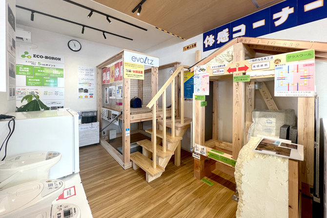 音漏れや結露、外気温をシャットアウトする高性能住宅を体感できる「体感コーナー」。断熱性の高い樹脂サッシ・地震から家族を守る制振装置などヤマト住建の家づくりの秘密が展示されています。外張り断熱の違いなど、はじめは見るだけ聞くくだけで大歓迎!お客様のへ注文住宅のご要望をお聞かせください。