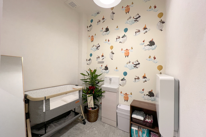 お打ち合わせ中も赤ちゃんと一緒のママが快適にお過ごし頂けるよう、おむつ交換のためのスペースも。ミルク用のお湯や交換用オムツもサイズ別にご用意しています。お気軽にスタッフまでお申しつけください。