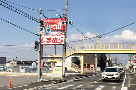 『しまむら』を通過すると注文住宅のヤマト住建の青い看板が見えてきます。