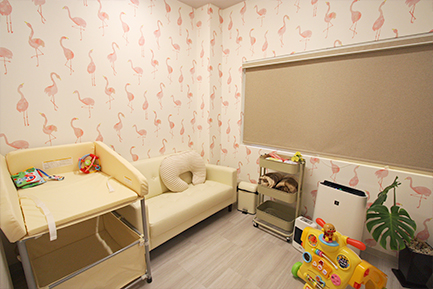 お打ち合わせ中も赤ちゃんと一緒のママが快適にお過ごし頂けるよう、おむつ交換のためのスペースも。ミルク用のお湯や交換用オムツもサイズ別にご用意しています。お気軽にスタッフまでお申しつけください。