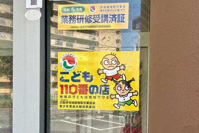 南大阪店は、地域の子ども達が安心して暮らせる環境を確保するため“こども110番の店”に協力しています。この取り組みを通して、子ども達の安全を確保するとともに、安心して暮らせる地域社会づくりに貢献したいと考えています。