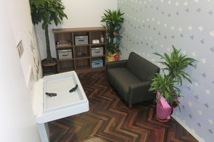 お打ち合わせ中も赤ちゃんと一緒のママが快適にお過ごし頂けるよう、おむつ交換のためのスペースも。ミルク用のお湯や交換用オムツもサイズ別にご用意しています。お気軽にスタッフまでお申しつけください。
