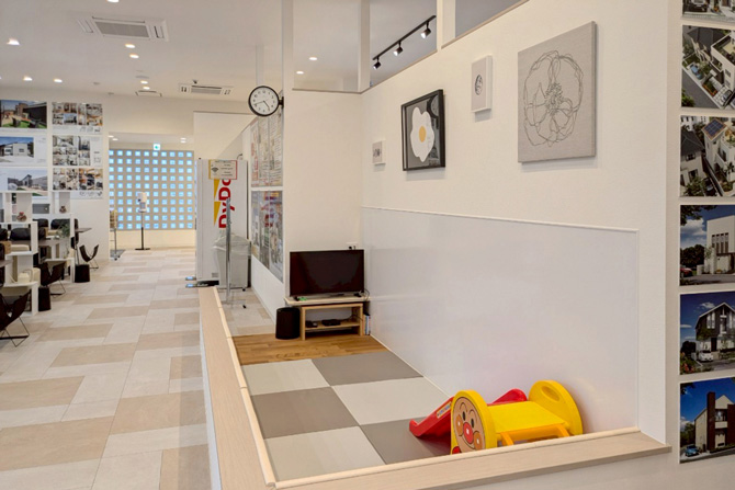 家づくりのお打ち合わせは資金計画や間取りなど、大切な内容ばかりです。長時間のお打ち合わせでもお子様が疲れてしまわないよう、お席のすぐそばには楽しい工夫がいっぱいのキッズスペースをご用意しています。