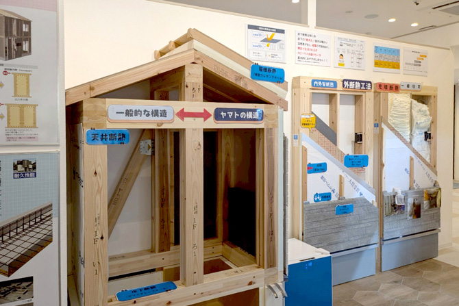 音漏れや結露、外気温をシャットアウトする高性能住宅を体感できる「体感コーナー」。断熱性の高い樹脂サッシ・地震から家族を守る制振装置などヤマト住建の家づくりの秘密が展示されています。外張り断熱・ダブル断熱の違いなど、はじめは見るだけ聞くくだけで大歓迎!お客様の注文住宅へのご要望をお聞かせください。