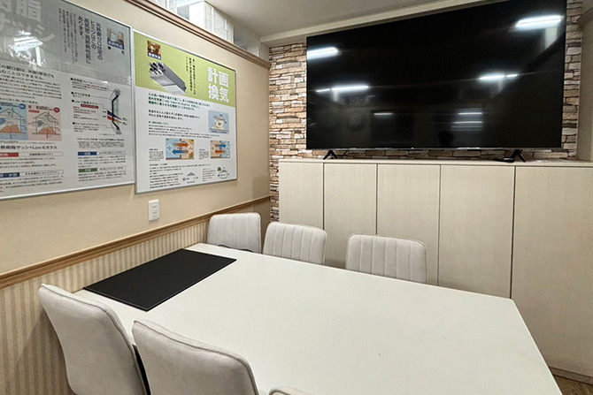 音漏れや結露、外気温をシャットアウトする高性能住宅を体感できる「体感コーナー」。断熱性の高い樹脂サッシ・地震から家族を守る制振装置などヤマト住建の家づくりの秘密が展示されています。外張り断熱の違いなど、はじめは見るだけ聞くくだけで大歓迎!お客様のへ注文住宅のご要望をお聞かせください。