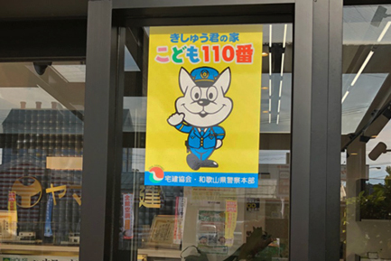 和歌山店は、地域の子ども達が安心して暮らせる環境を確保するため“きしゅう君の家 こども110番”に協力しています。この取り組みを通して、子ども達の安全を確保するとともに、安心して暮らせる地域社会づくりに貢献したいと考えています。