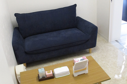 お打ち合わせ中も赤ちゃんと一緒のママが快適にお過ごし頂けるよう、おむつ交換のためのスペースも。ミルク用のお湯もございます。お気軽にスタッフまでお申しつけください。