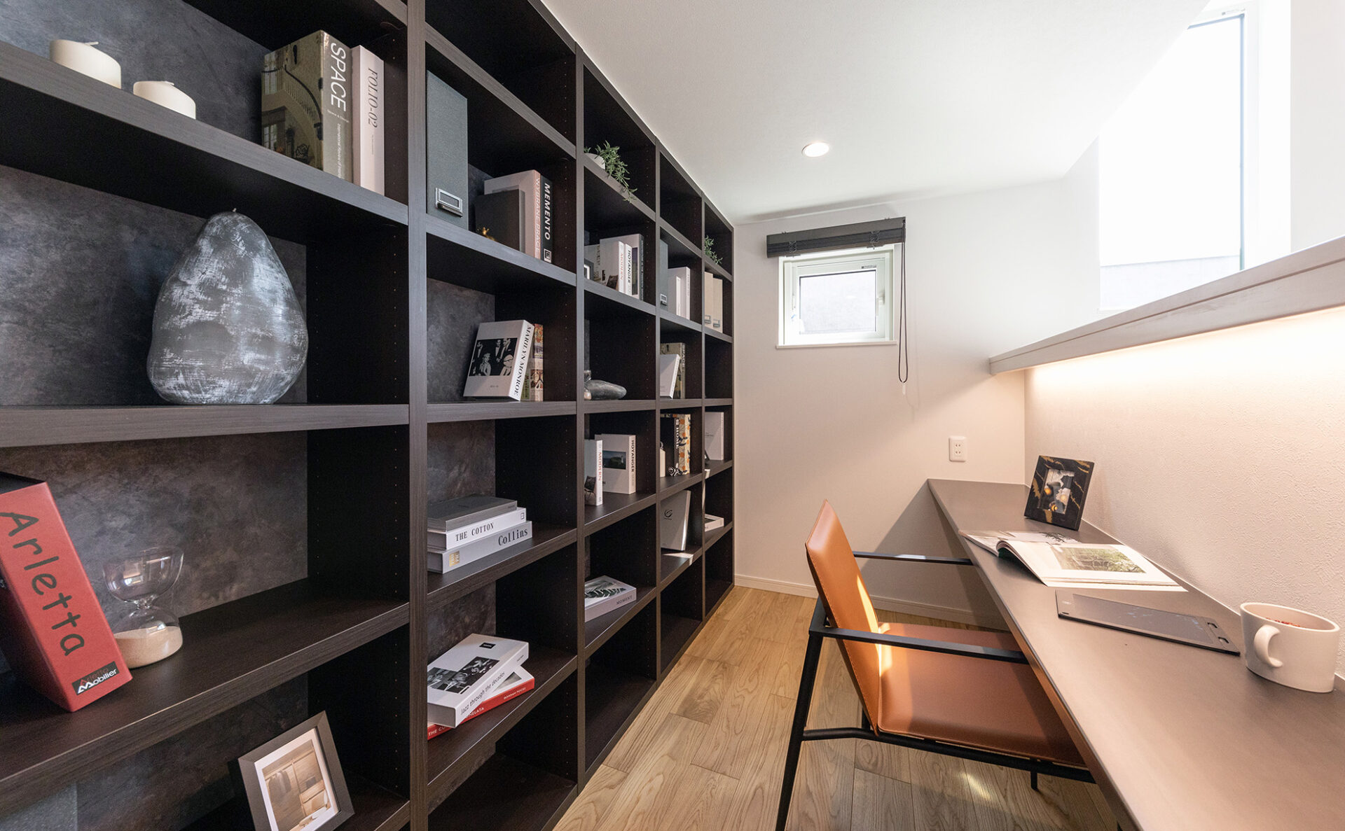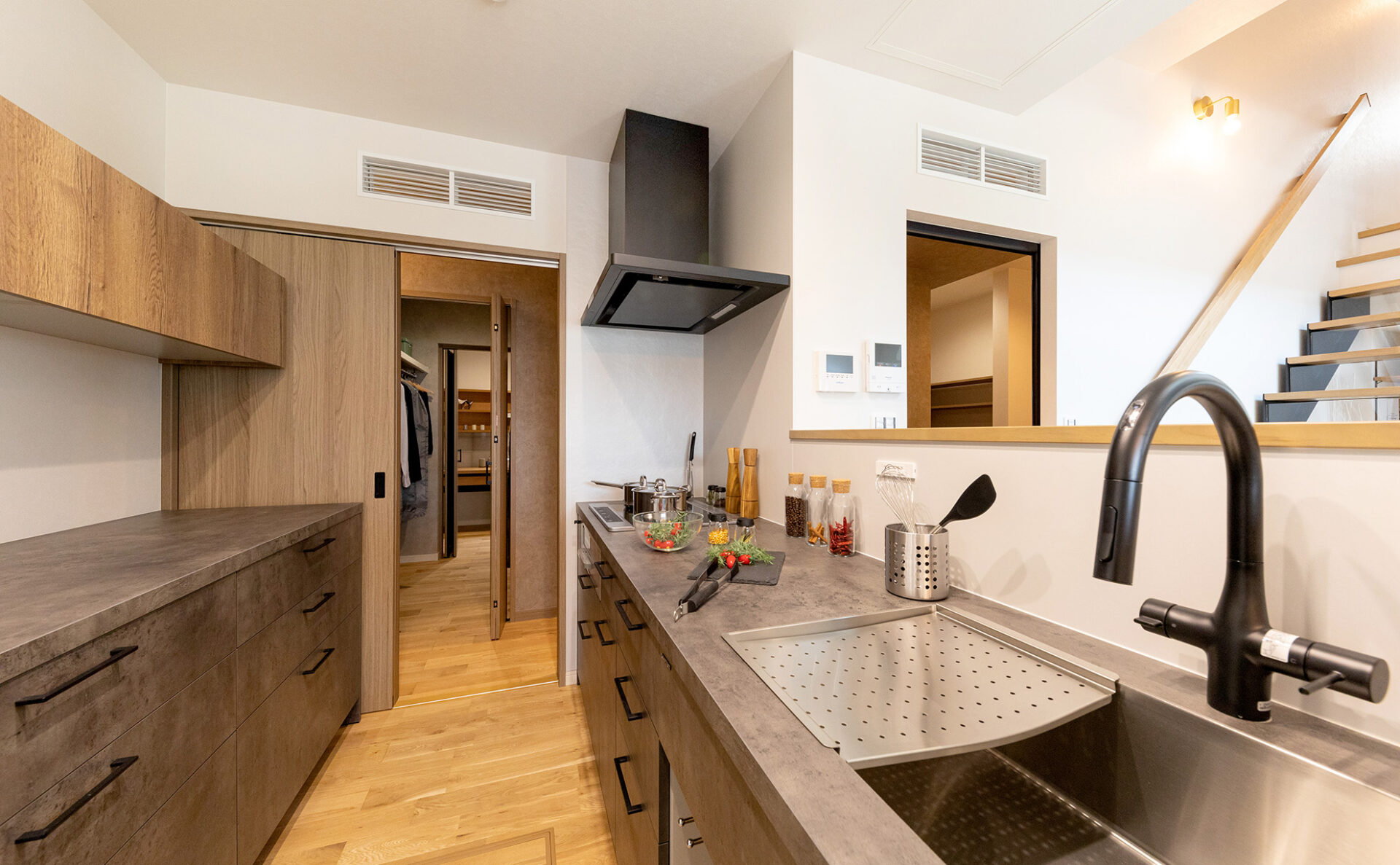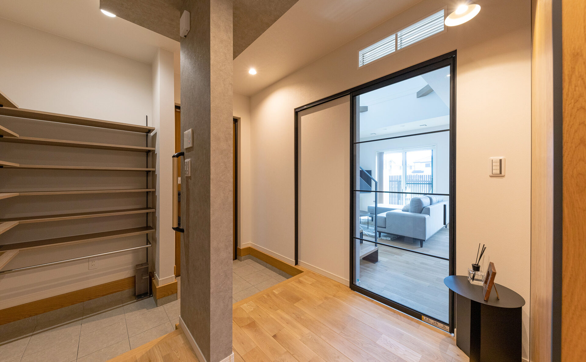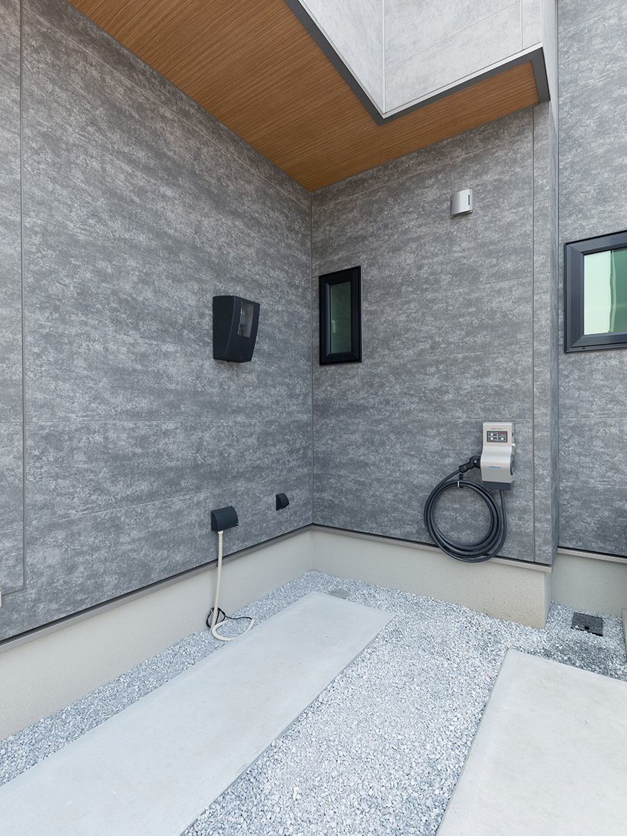 1階リビング~3階のロフトまで繋がる三層吹き抜けで開放感たっぷり。ウッドデッキでアウトドア時間を過ごしたり、落ち着きのある黒のリビング階段が暮らしをおしゃれに演出します。太陽光発電・V2Hで自然にやさしく経済的な暮らしをご提案。室内空気循環システム(エアフローシステム)を採用したモデルハウスです。