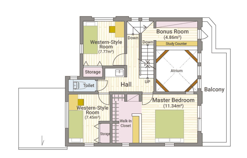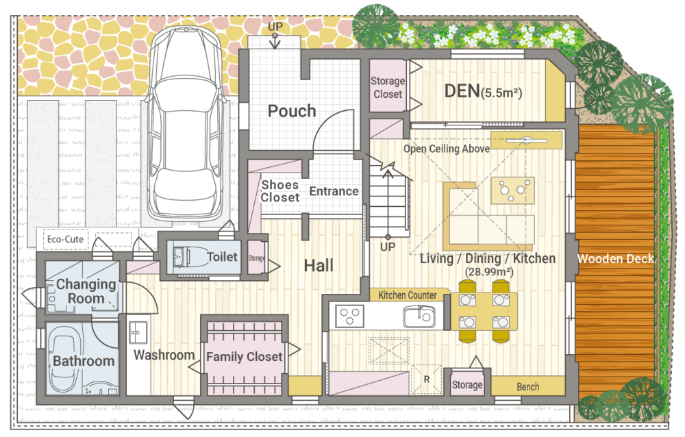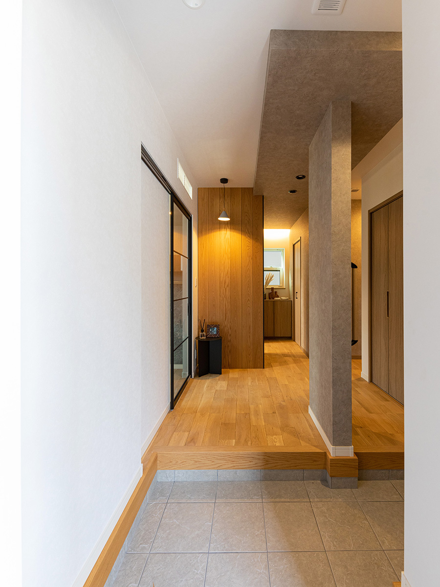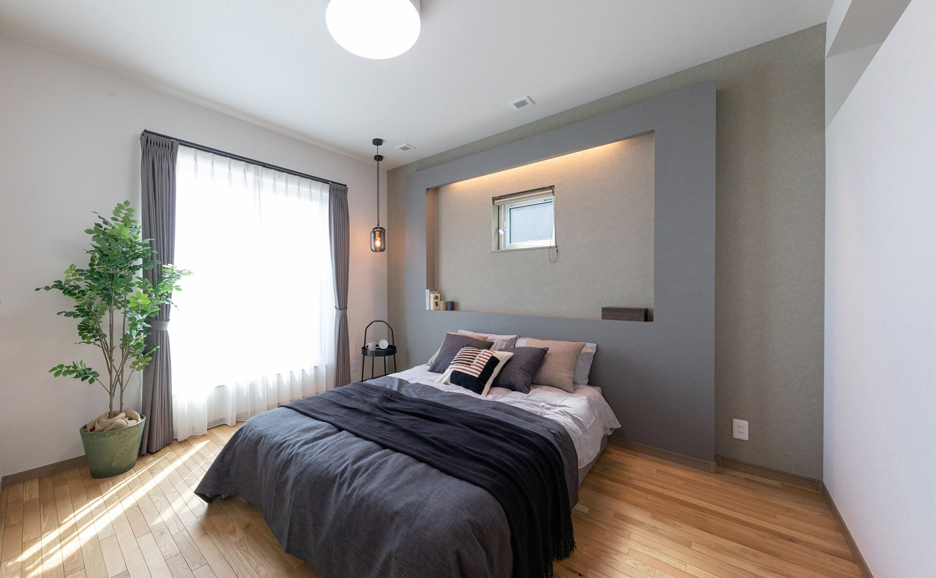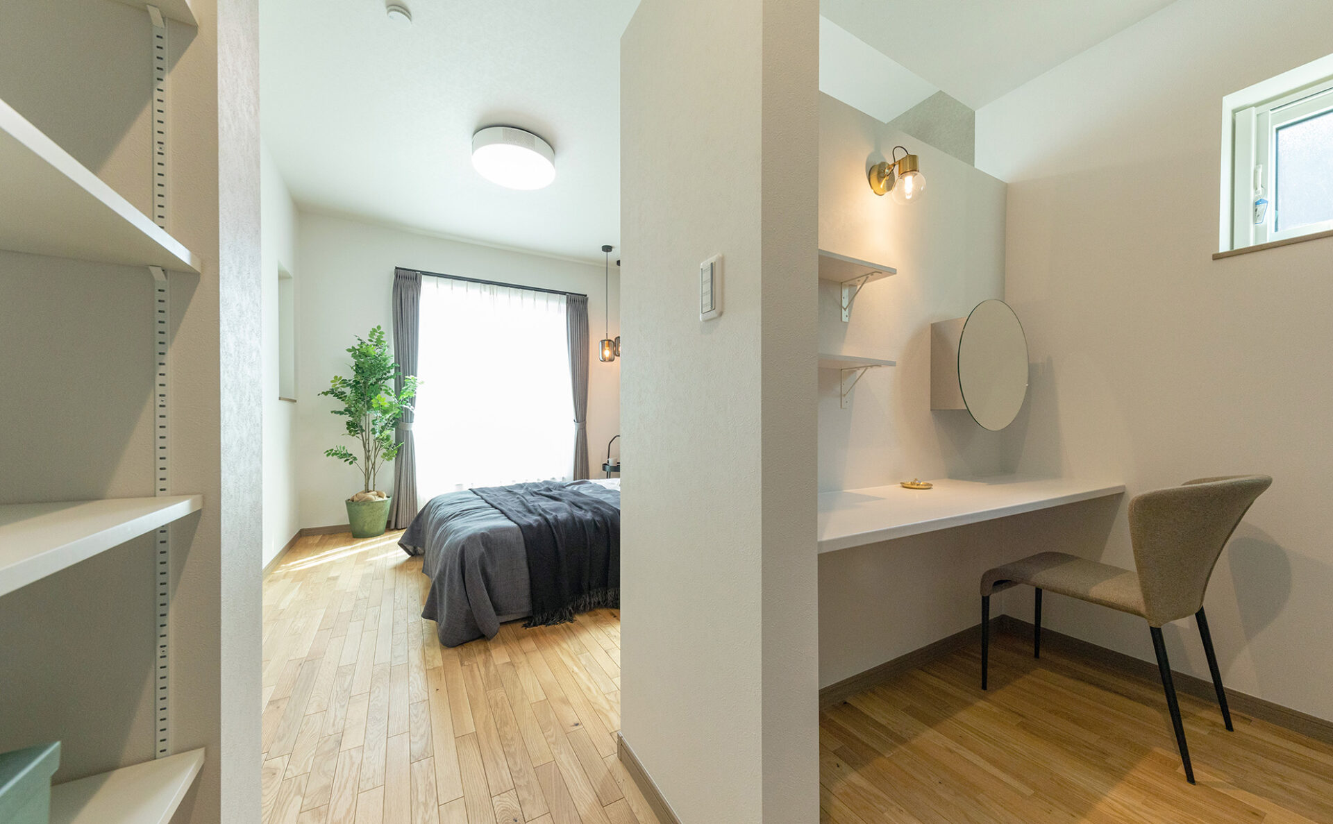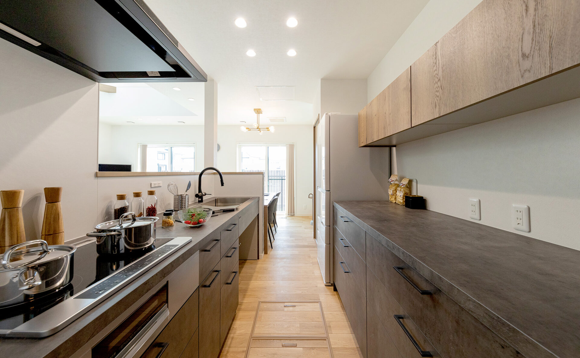 1階リビング~3階のロフトまで繋がる三層吹き抜けで開放感たっぷり。ウッドデッキでアウトドア時間を過ごしたり、落ち着きのある黒のリビング階段が暮らしをおしゃれに演出します。太陽光発電・V2Hで自然にやさしく経済的な暮らしをご提案。室内空気循環システム(エアフローシステム)を採用したモデルハウスです。