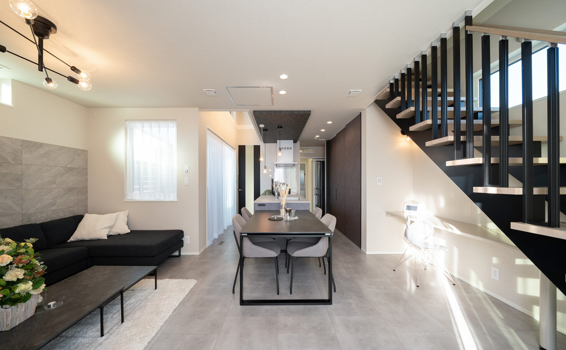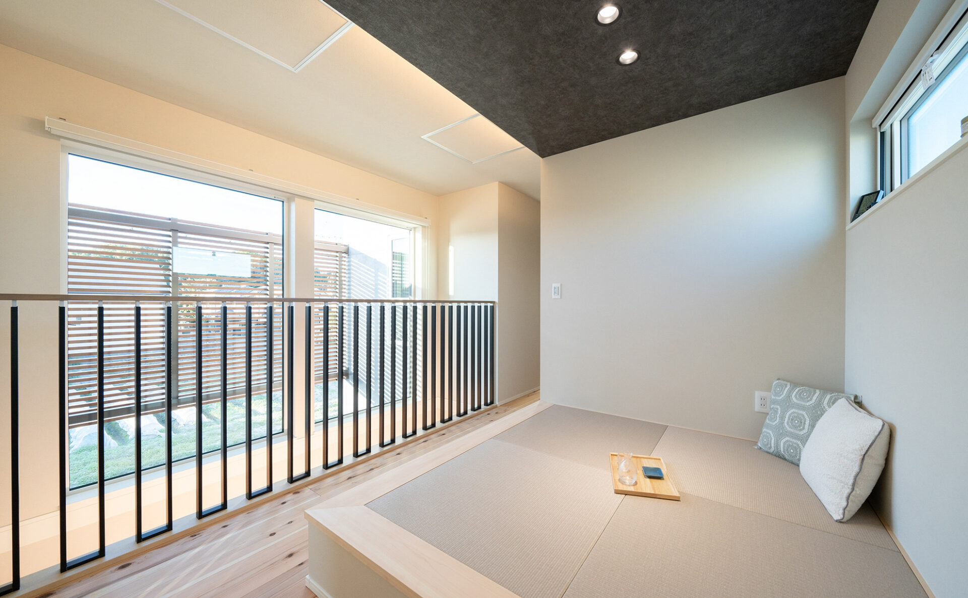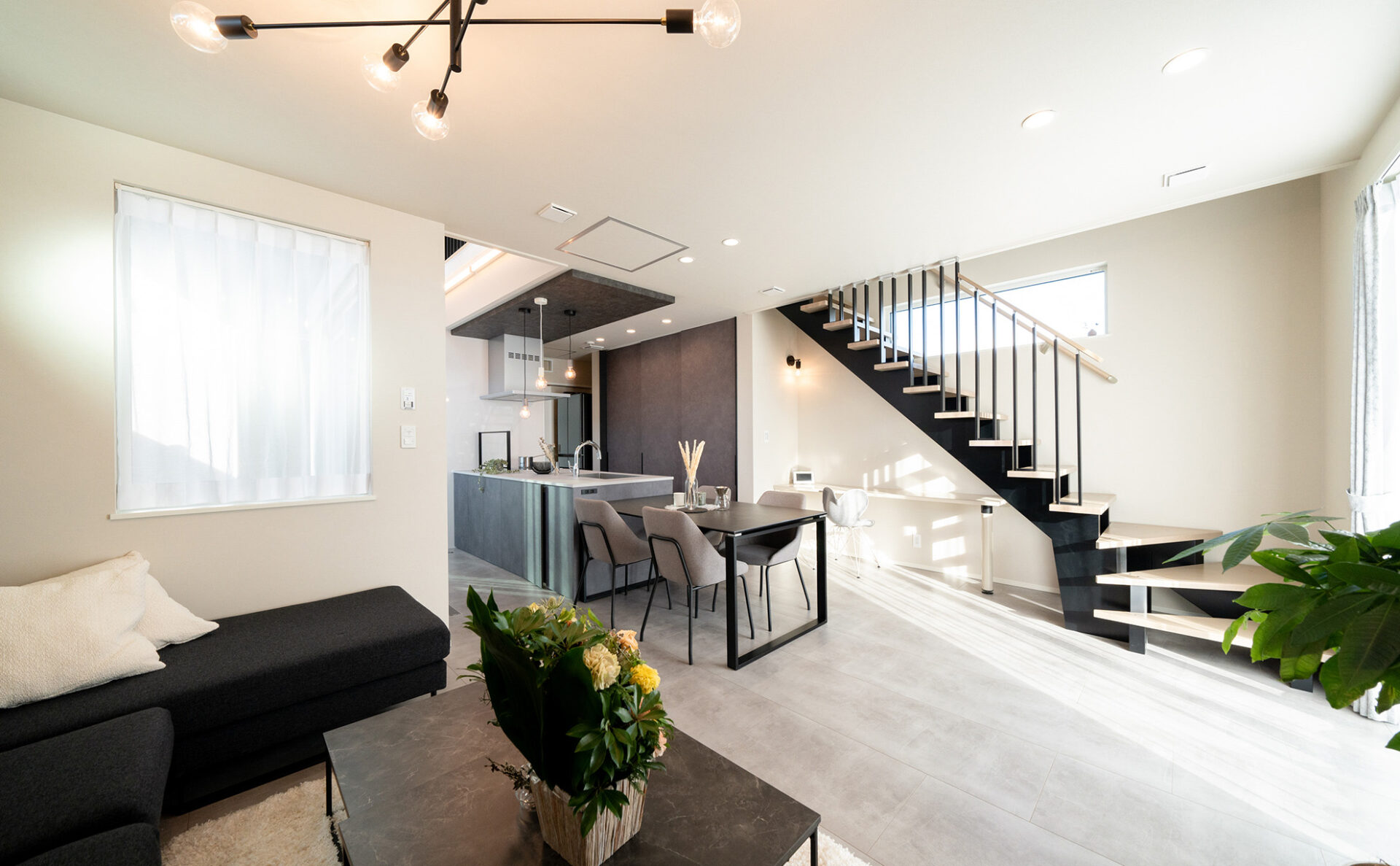 南北に抜ける広々LDKで開放感あふれるくつろぎ空間が魅力の住まい。約31坪ながら空間を効率的につかうことで、暮らしがラクになる収納スペースや柔軟に使えるタタミコーナーなど様々なスペースを取り入れました。内と外がつながるデッキも魅力のひとつ。太陽光パネルを約6.75kw搭載しており、家計に優しい暮らしを実現できます。