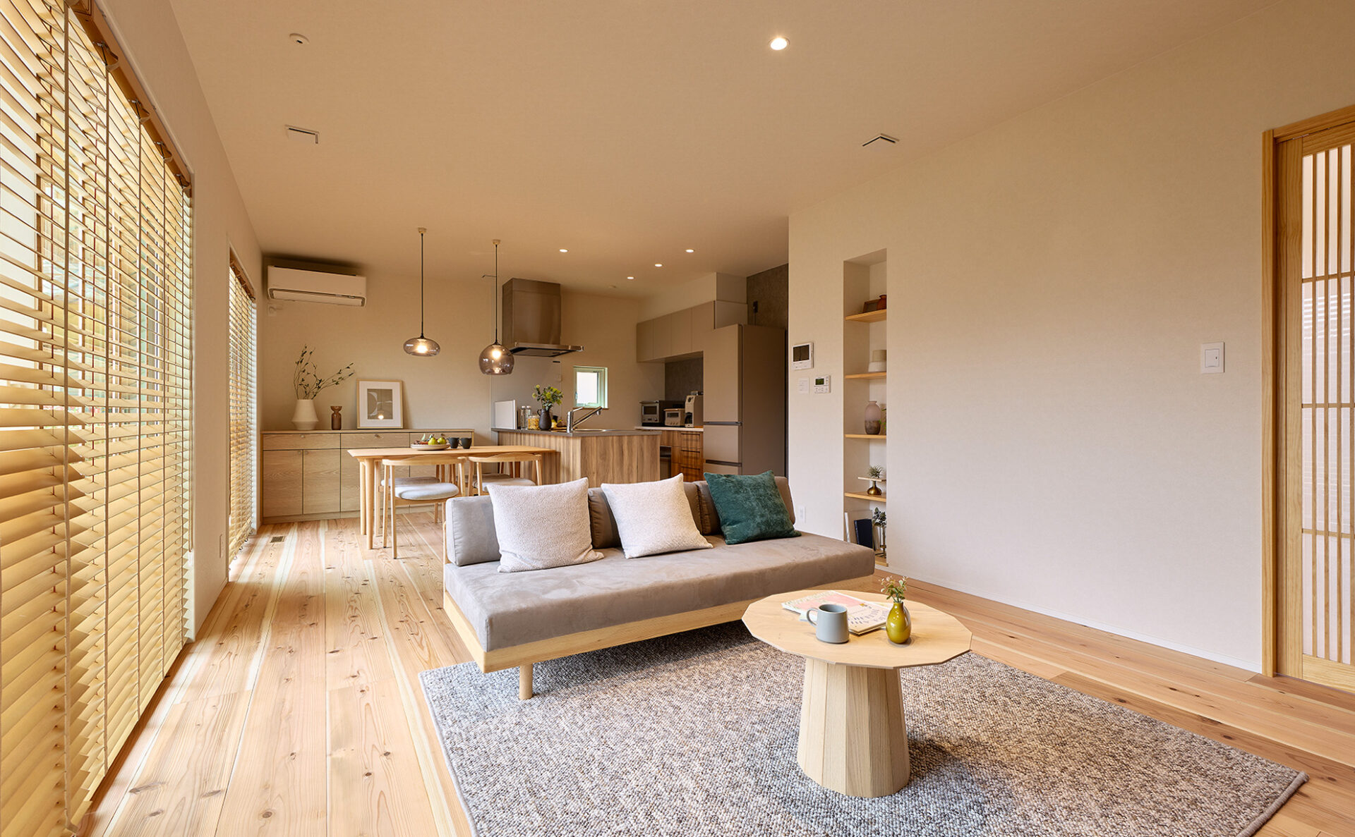 ゆとりあるLDKが、家族のくつろぎの中心に。どこにいても自然と会話が生まれる、つながりを大切にした住まい。
