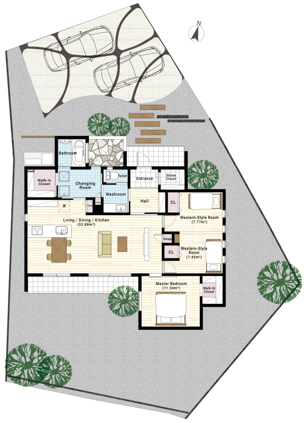 段差のないワンフロアの安心感に包まれながら、心地よく、そして長く住み続けられる平屋です。