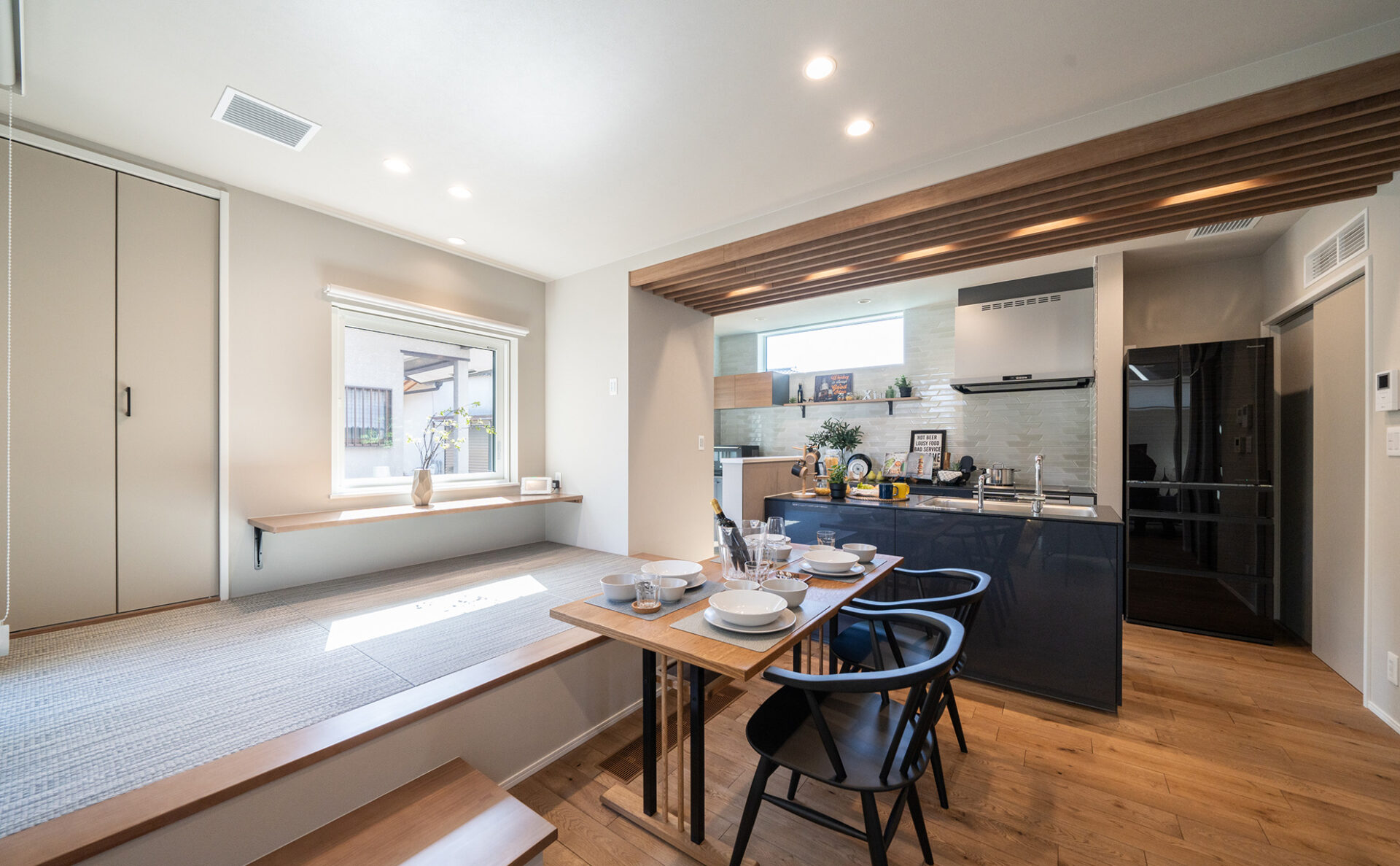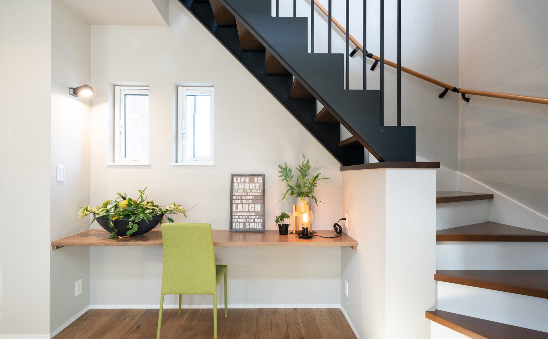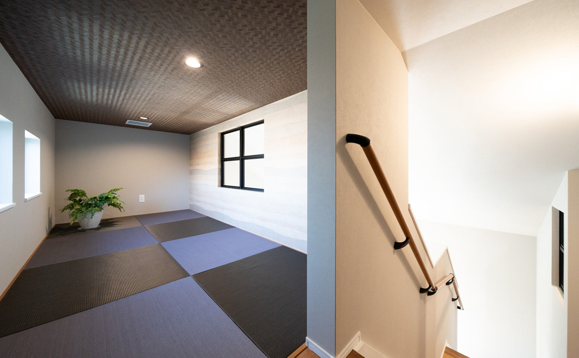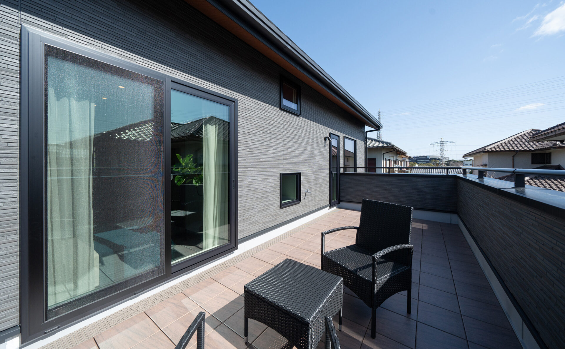 夫婦が永く住み続けられるストレスフリーの家をコンセプトにしたモデルハウス。吹き抜けやステップアップ大開口により光や風を取り入れた自宅リゾートが味わえます。また、1階にトレーニング室を設けて身体も動かせる空間を実現し、2.5階には隠し部屋を2部屋も設置。太陽光発電システムを7.5kW搭載し、家計と地球にやさしい住宅を実現しました。