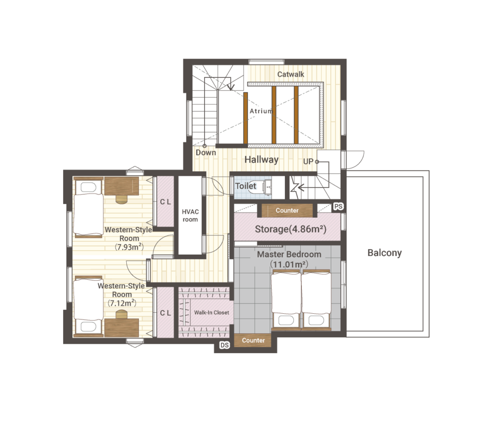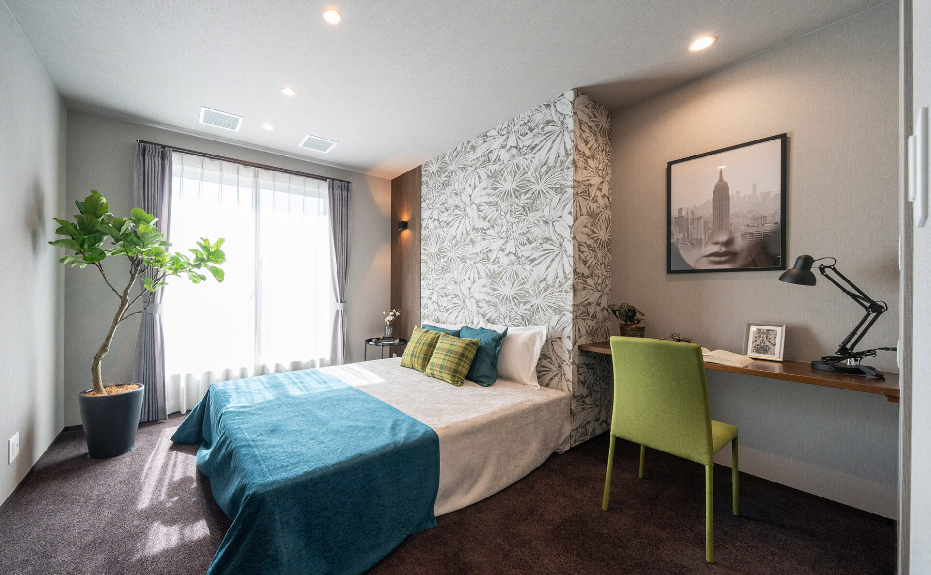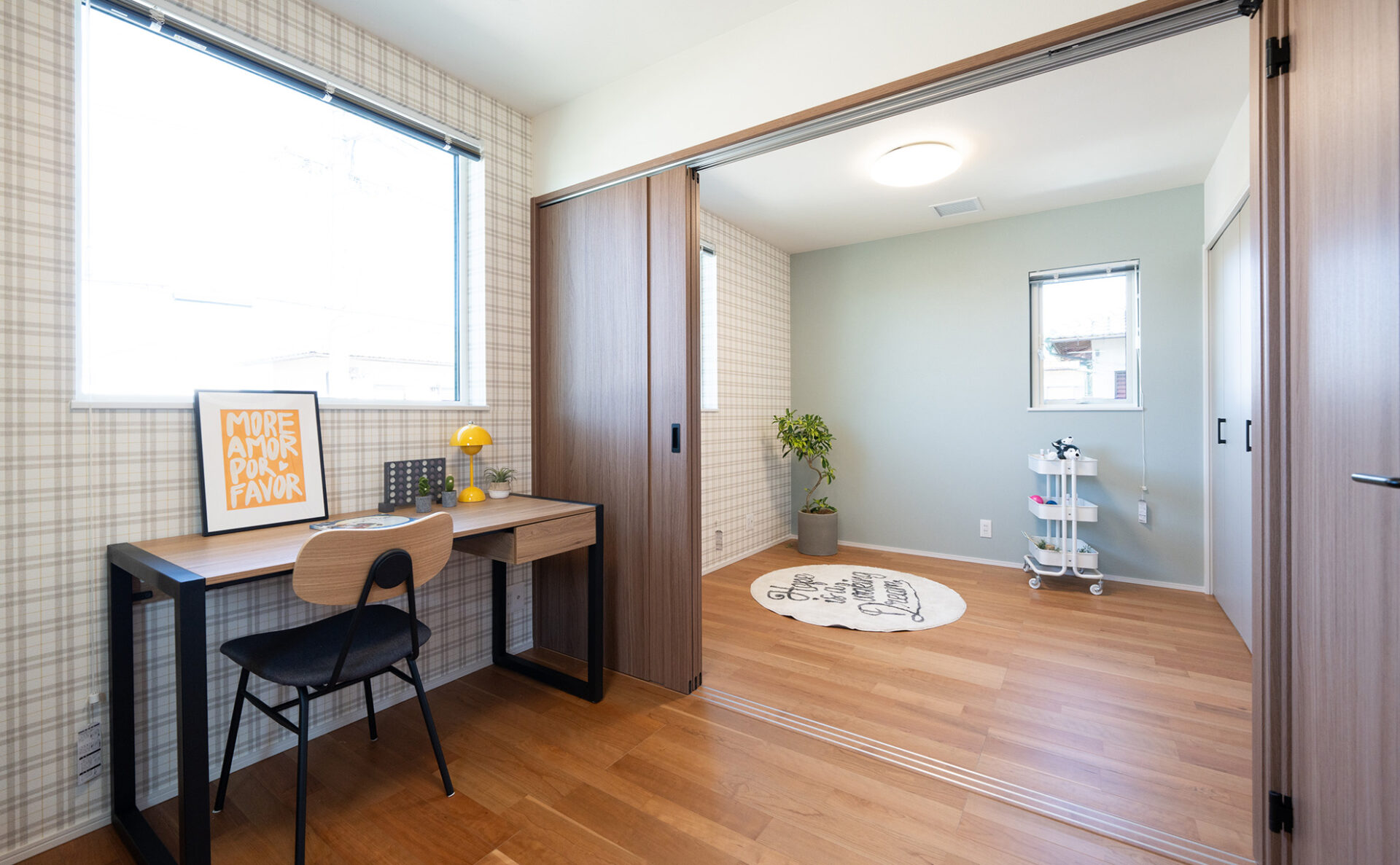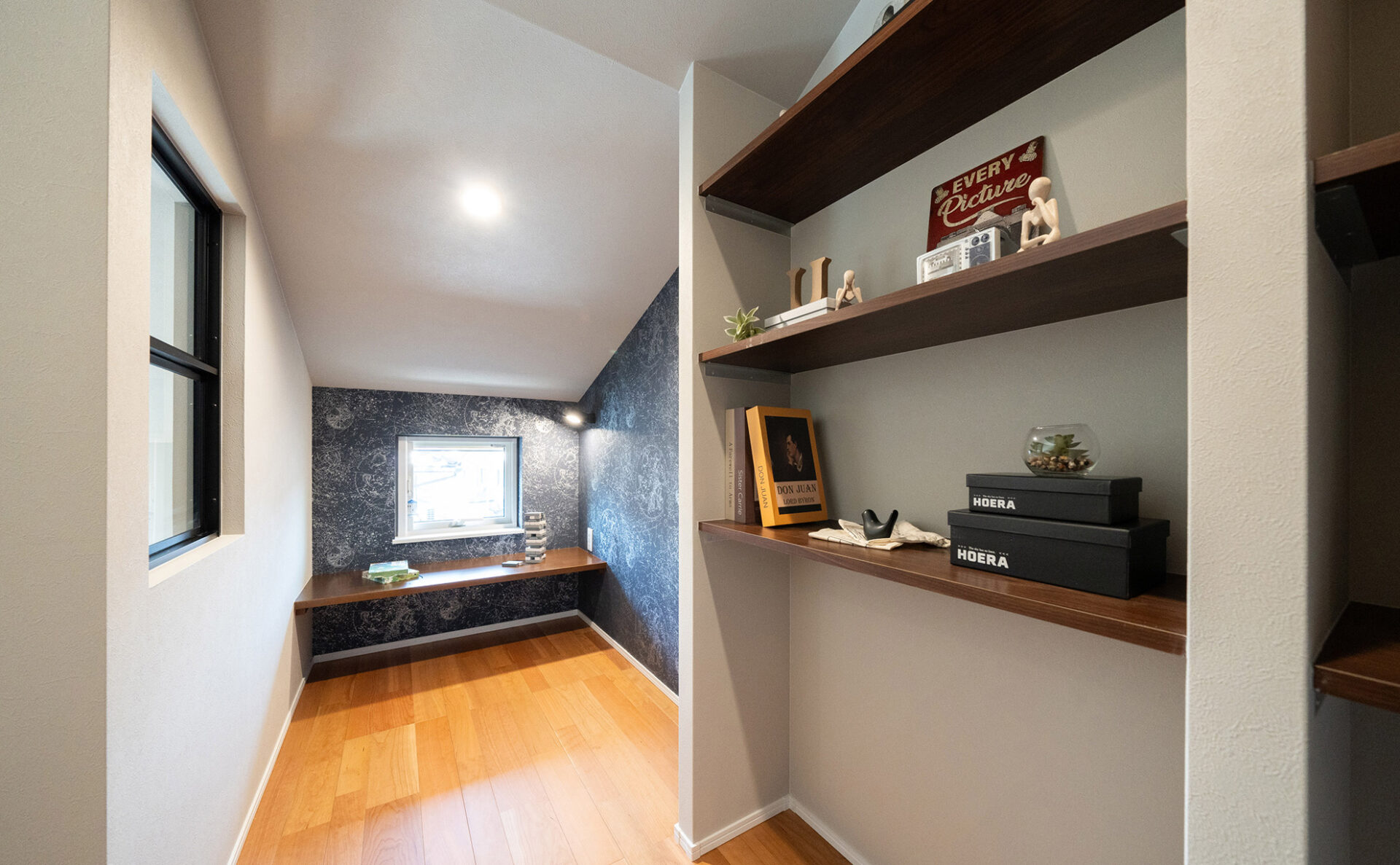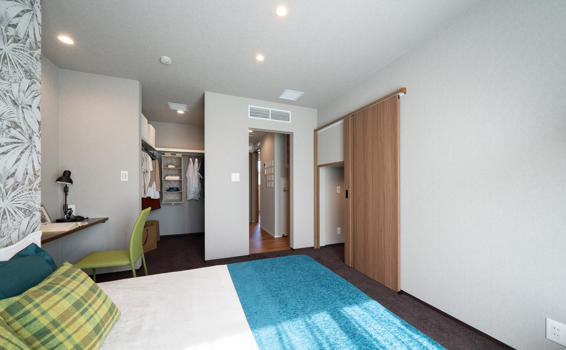 夫婦が永く住み続けられるストレスフリーの家をコンセプトにしたモデルハウス。吹き抜けやステップアップ大開口により光や風を取り入れた自宅リゾートが味わえます。また、1階にトレーニング室を設けて身体も動かせる空間を実現し、2.5階には隠し部屋を2部屋も設置。太陽光発電システムを7.5kW搭載し、家計と地球にやさしい住宅を実現しました。