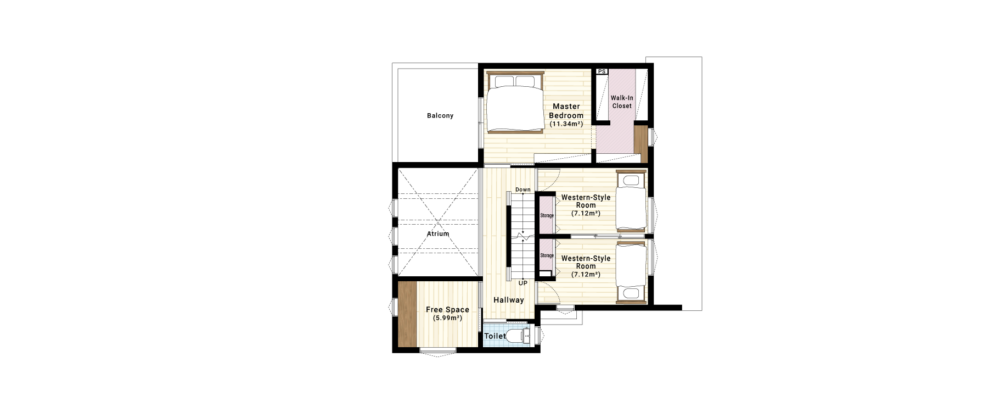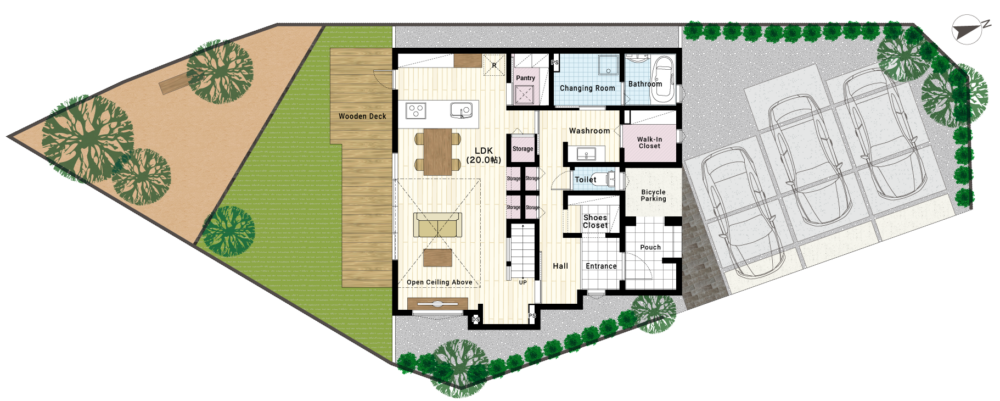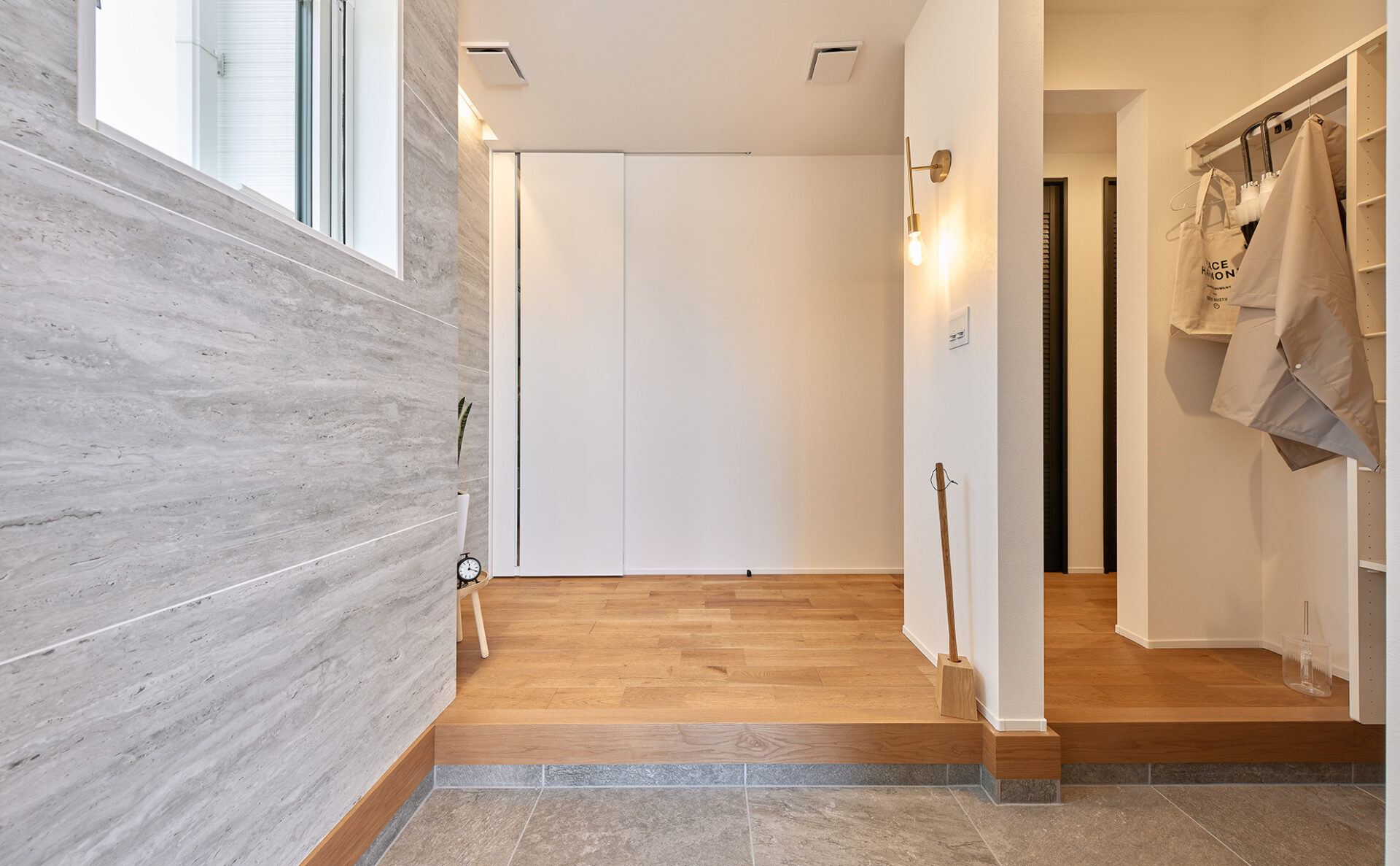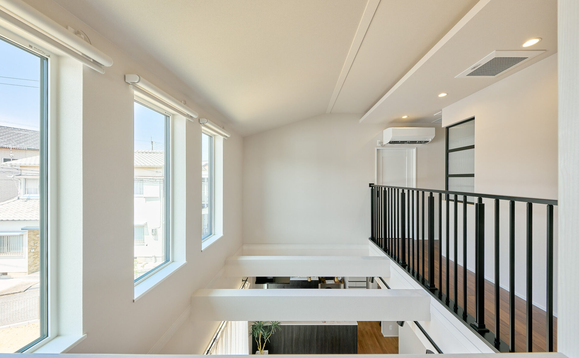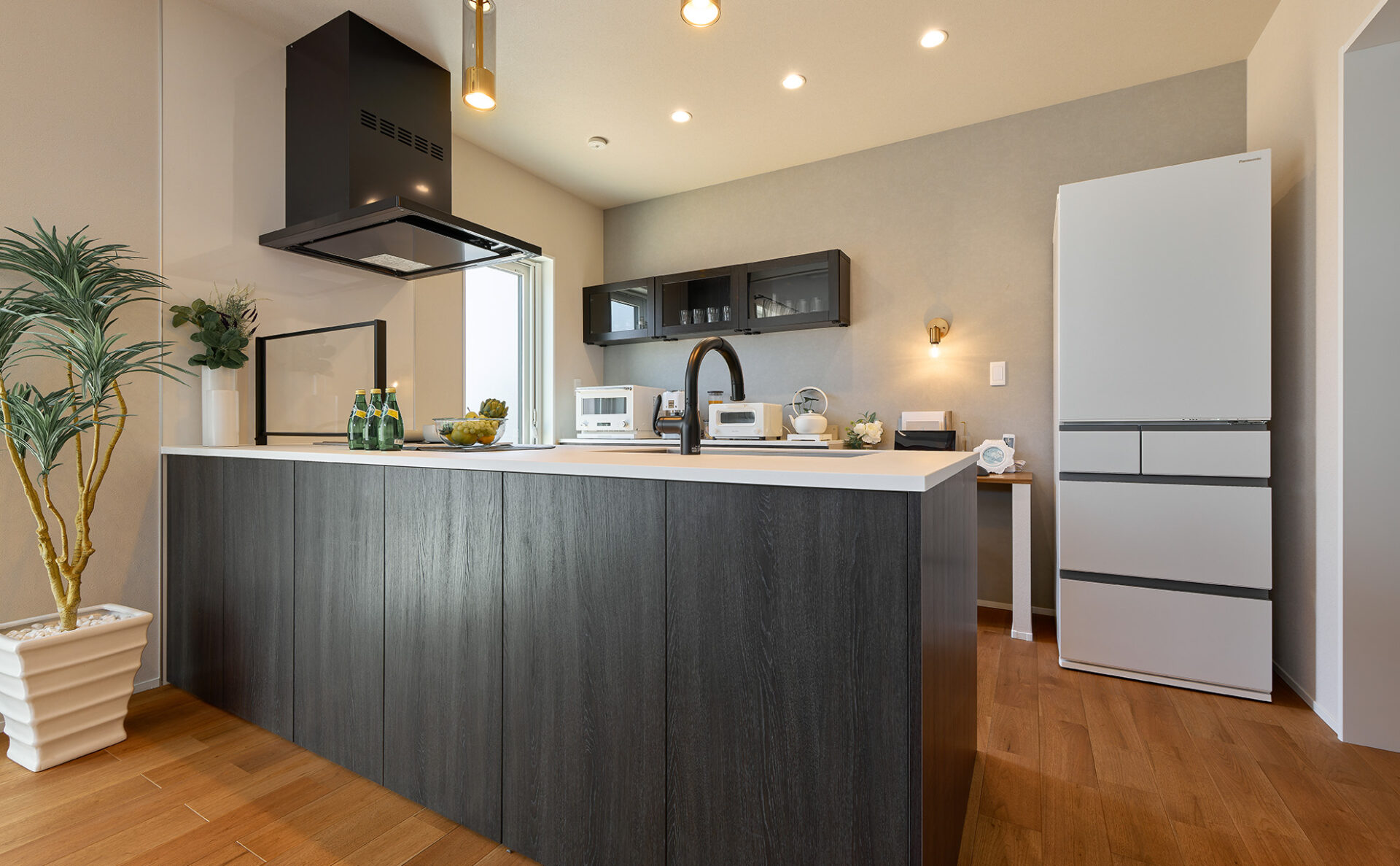 吹き抜けと広々としたLDKが、自然光に包まれた開放的な空間を演出。家全体に豊富な収納スペースを設けているため、日々の暮らしがすっきりと整い、快適に過ごせます。