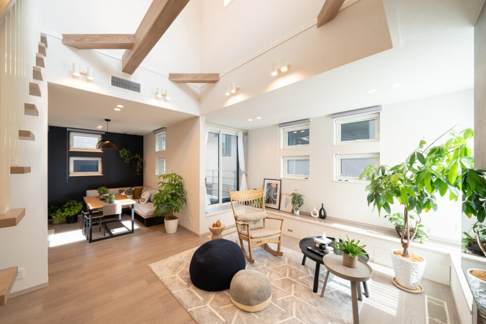 四季の変化に対応する高断熱・高気密設計に加え、再生可能エネルギーや自然素材を活用し、