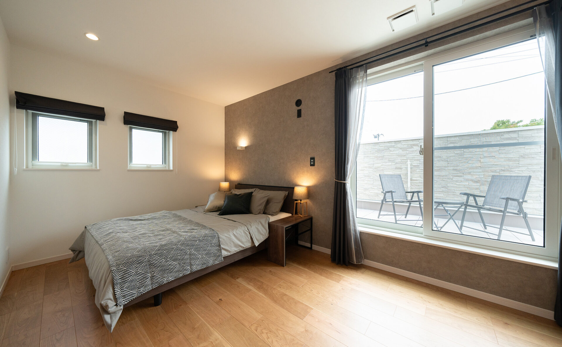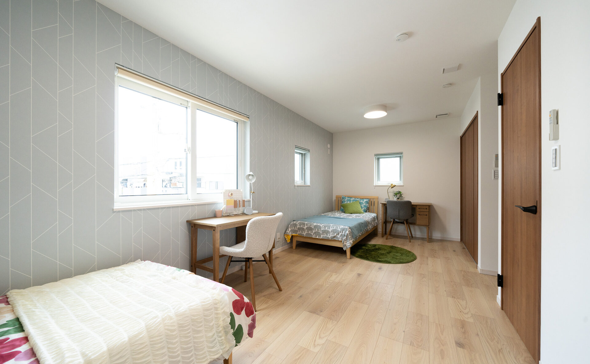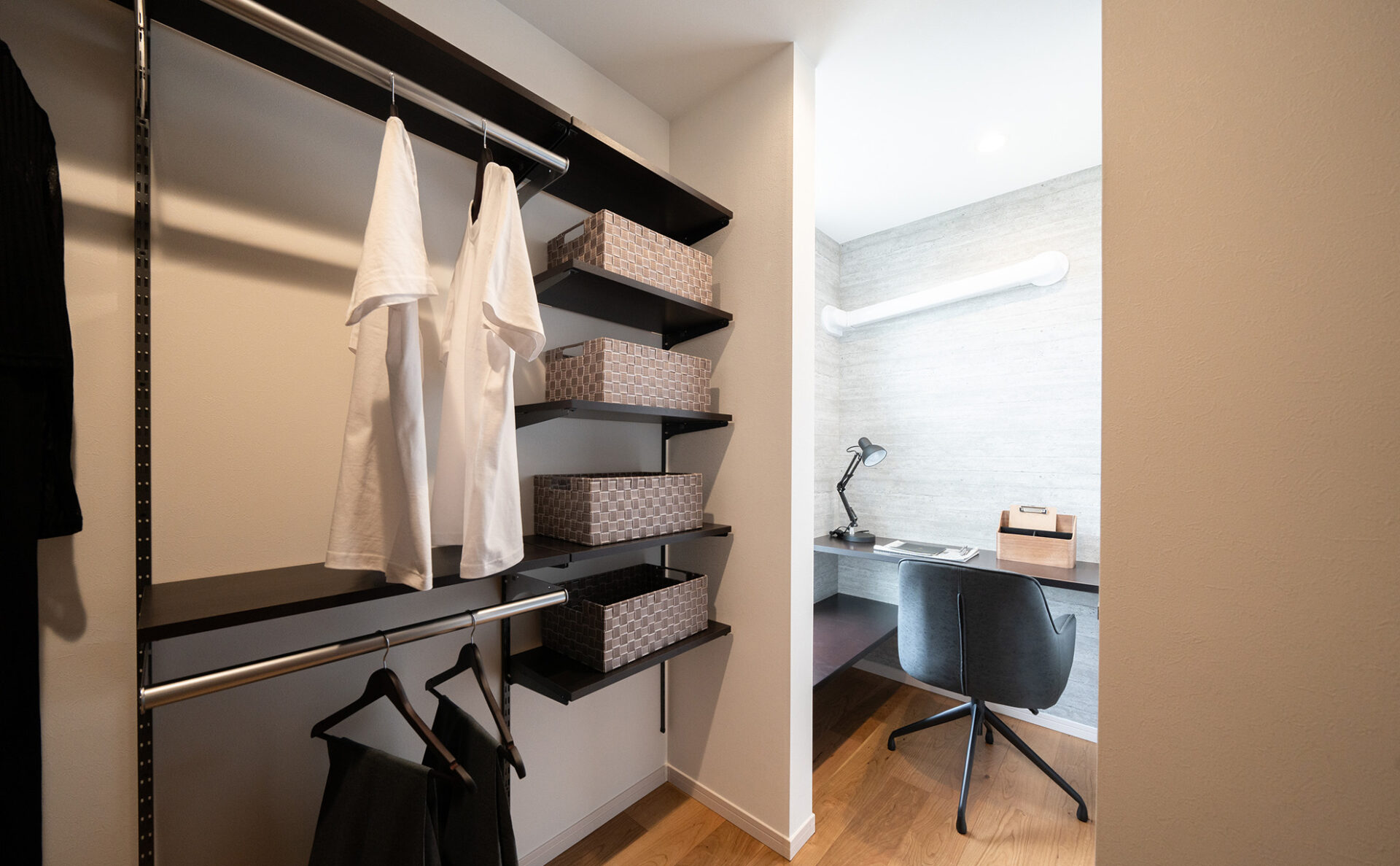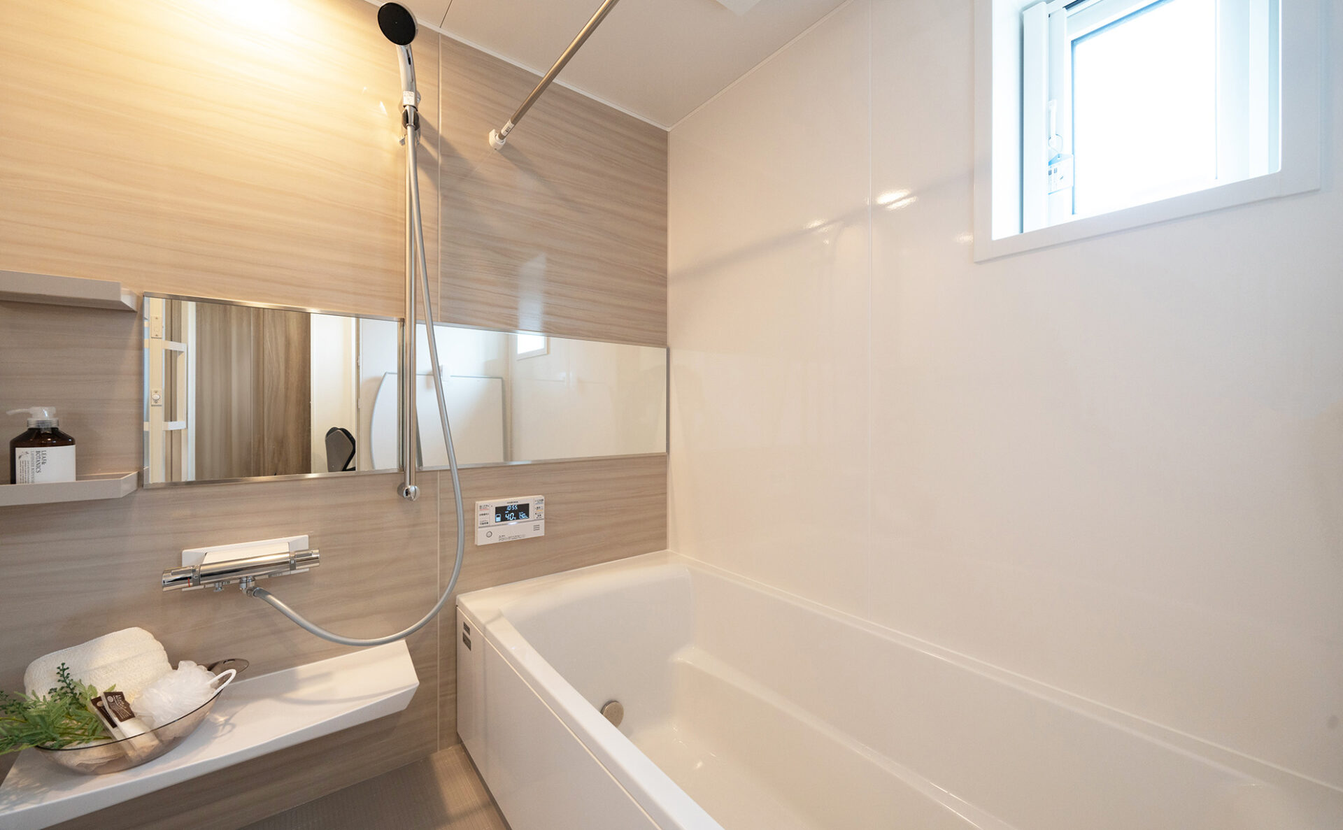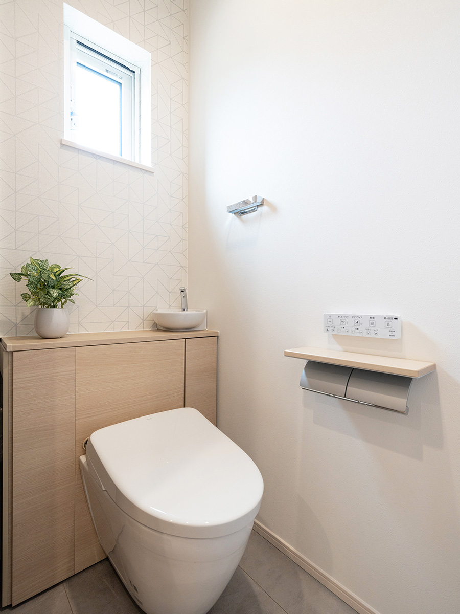 まちかどに佇む、白を基調としたモダンな住まい。ヘリンボーン柄の床材が特徴的なLDKは、家族の会話が自然と生まれる明るい空間です。さらに、便利なパントリールームや、洗面室と分けられたランドリールーム、空間を有効活用したスタディーコーナーなど、参考にしたいアイデアが満載。太陽光パネルを約8.25kw搭載しており、家計に優しい暮らしが実現できます。また、Airフローシステムを搭載し、1年中快適な暮らしをご体感いただけます。