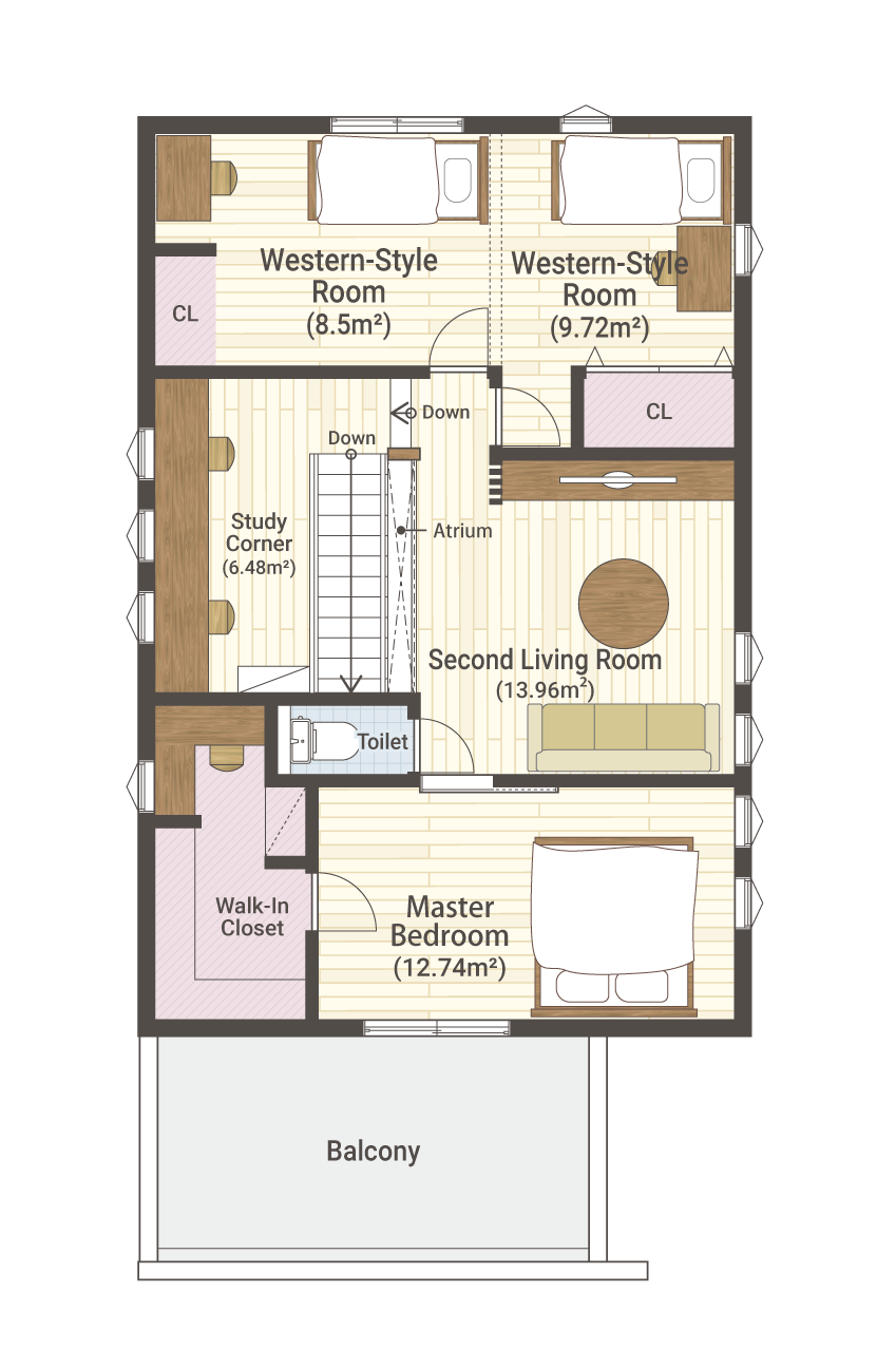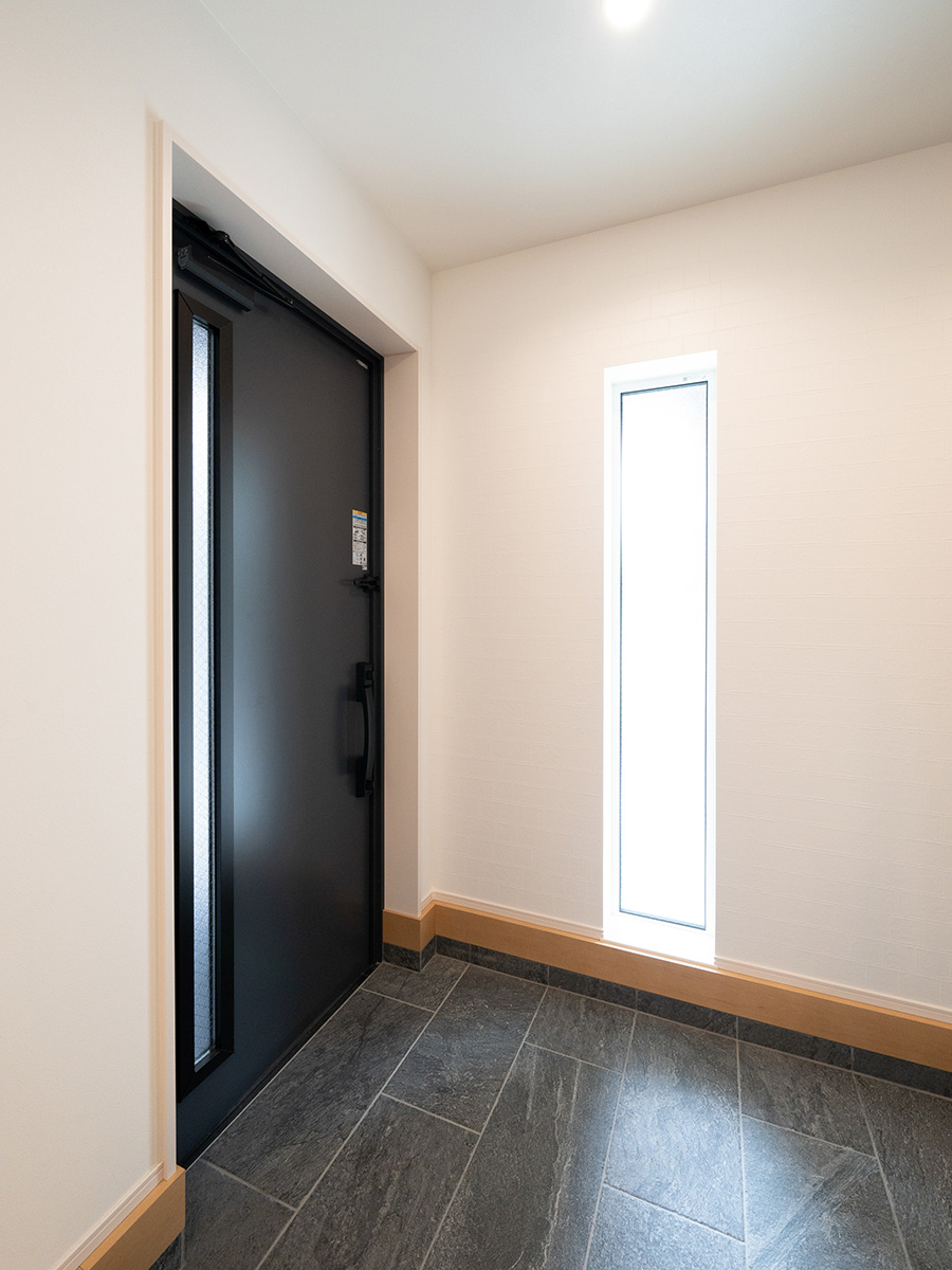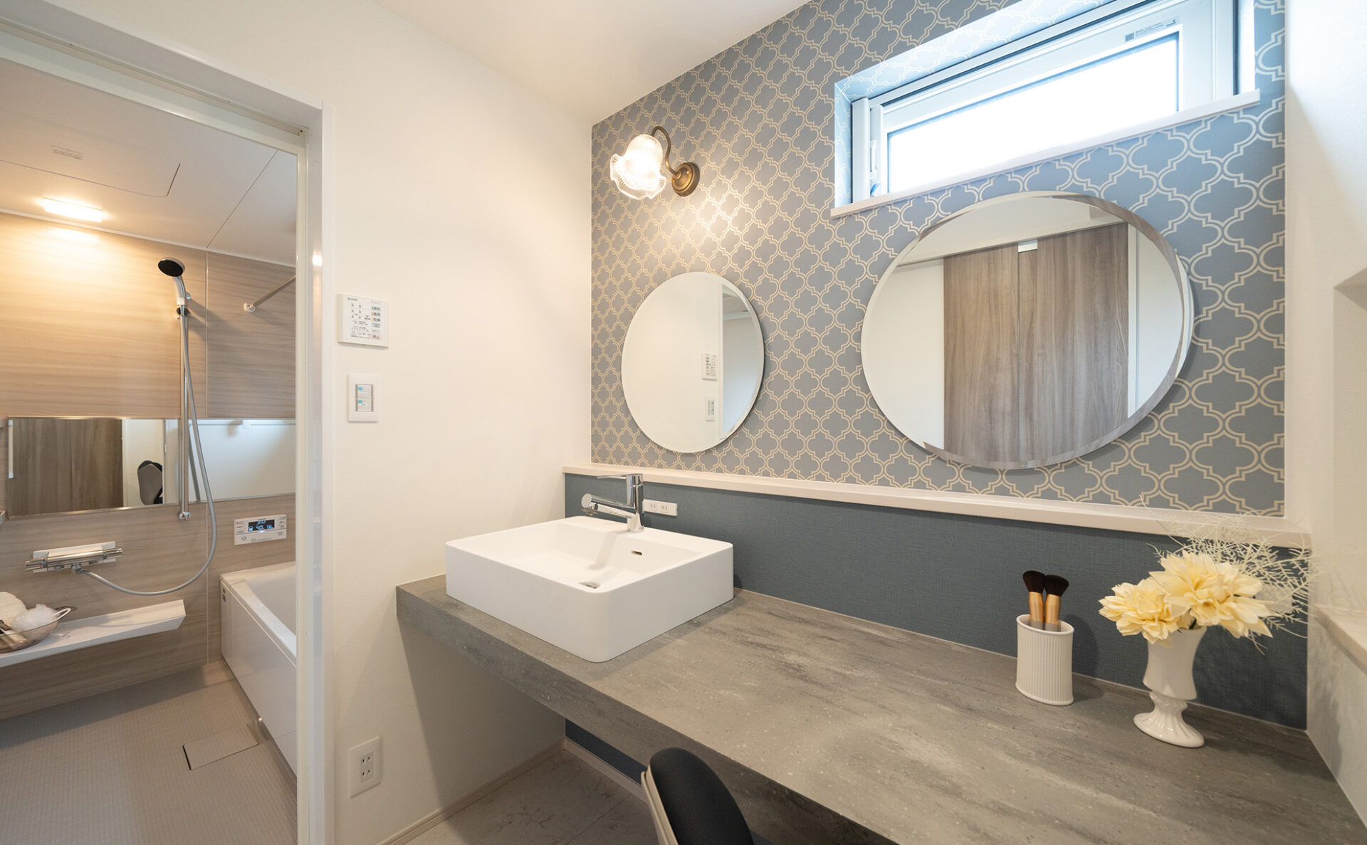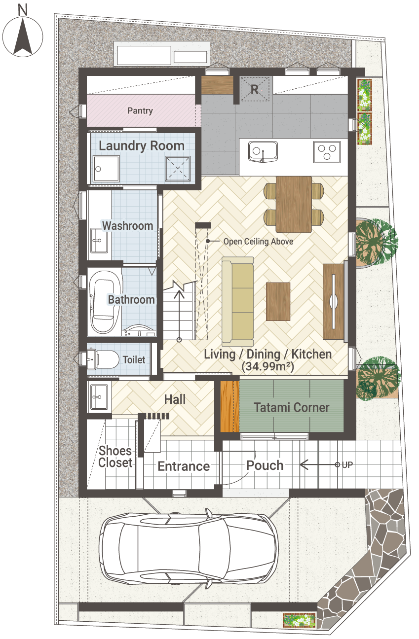 まちかどに佇む、白を基調としたモダンな住まい。ヘリンボーン柄の床材が特徴的なLDKは、家族の会話が自然と生まれる明るい空間です。さらに、便利なパントリールームや、洗面室と分けられたランドリールーム、空間を有効活用したスタディーコーナーなど、参考にしたいアイデアが満載。太陽光パネルを約8.25kw搭載しており、家計に優しい暮らしが実現できます。また、Airフローシステムを搭載し、1年中快適な暮らしをご体感いただけます。