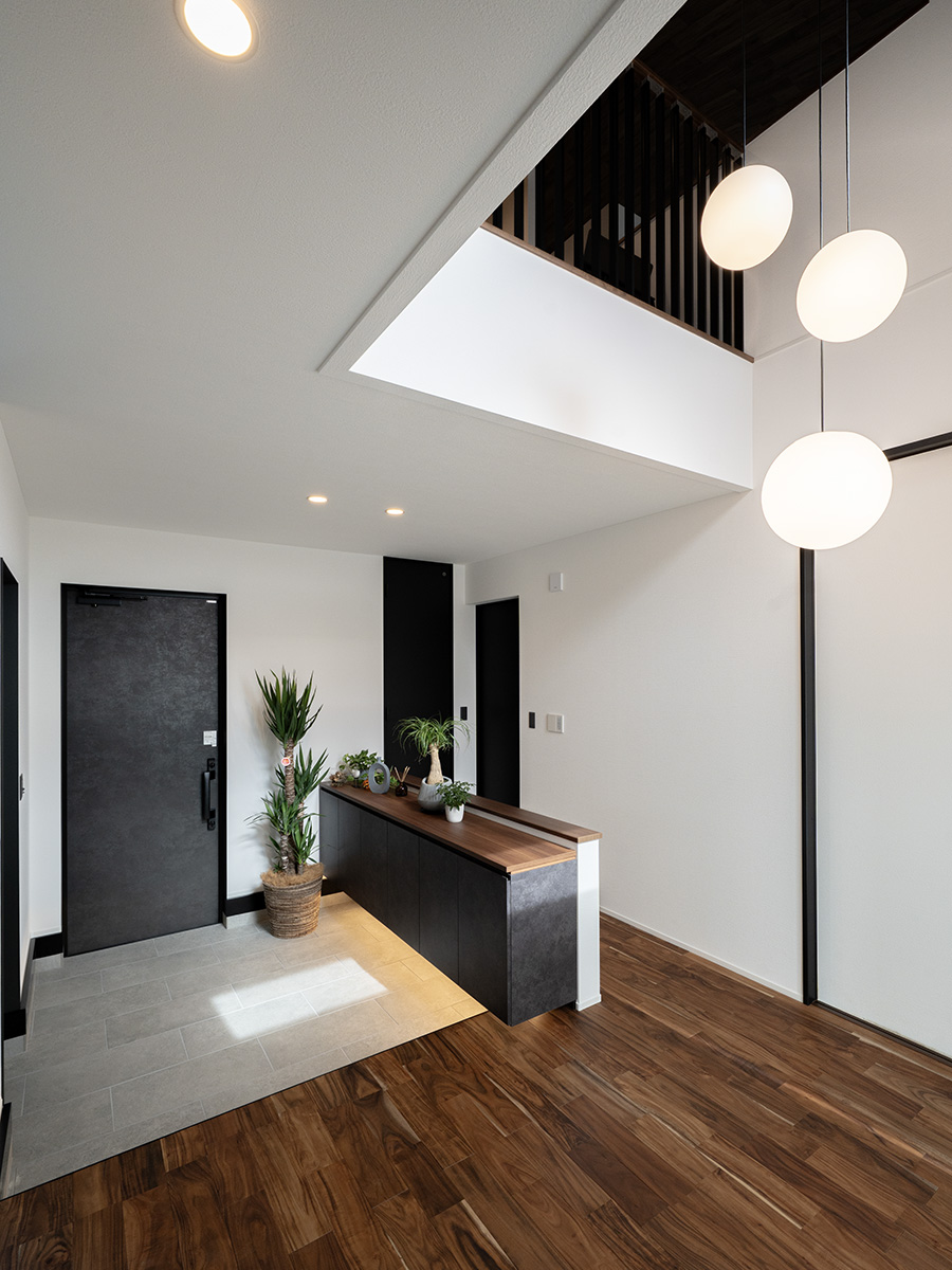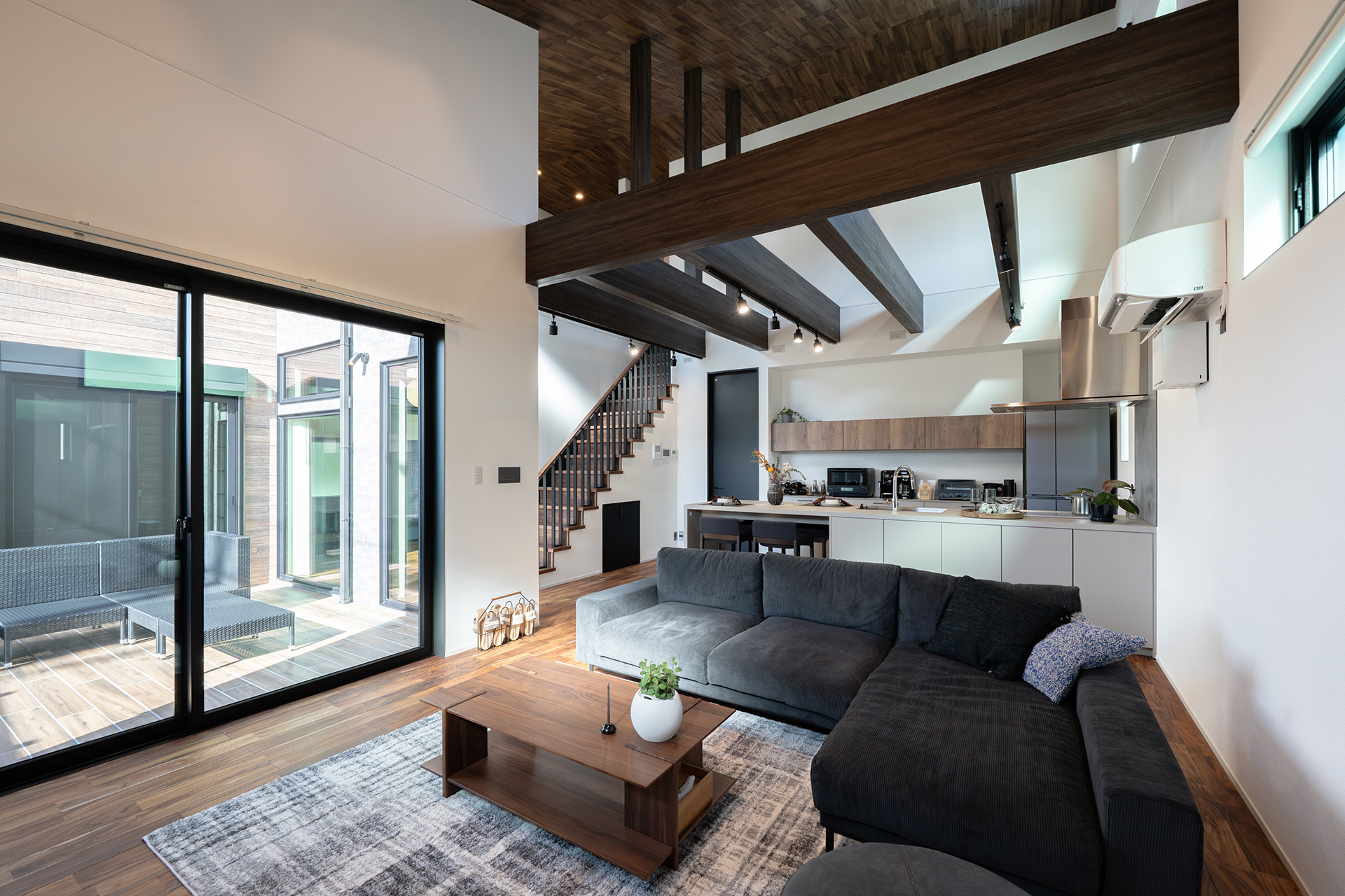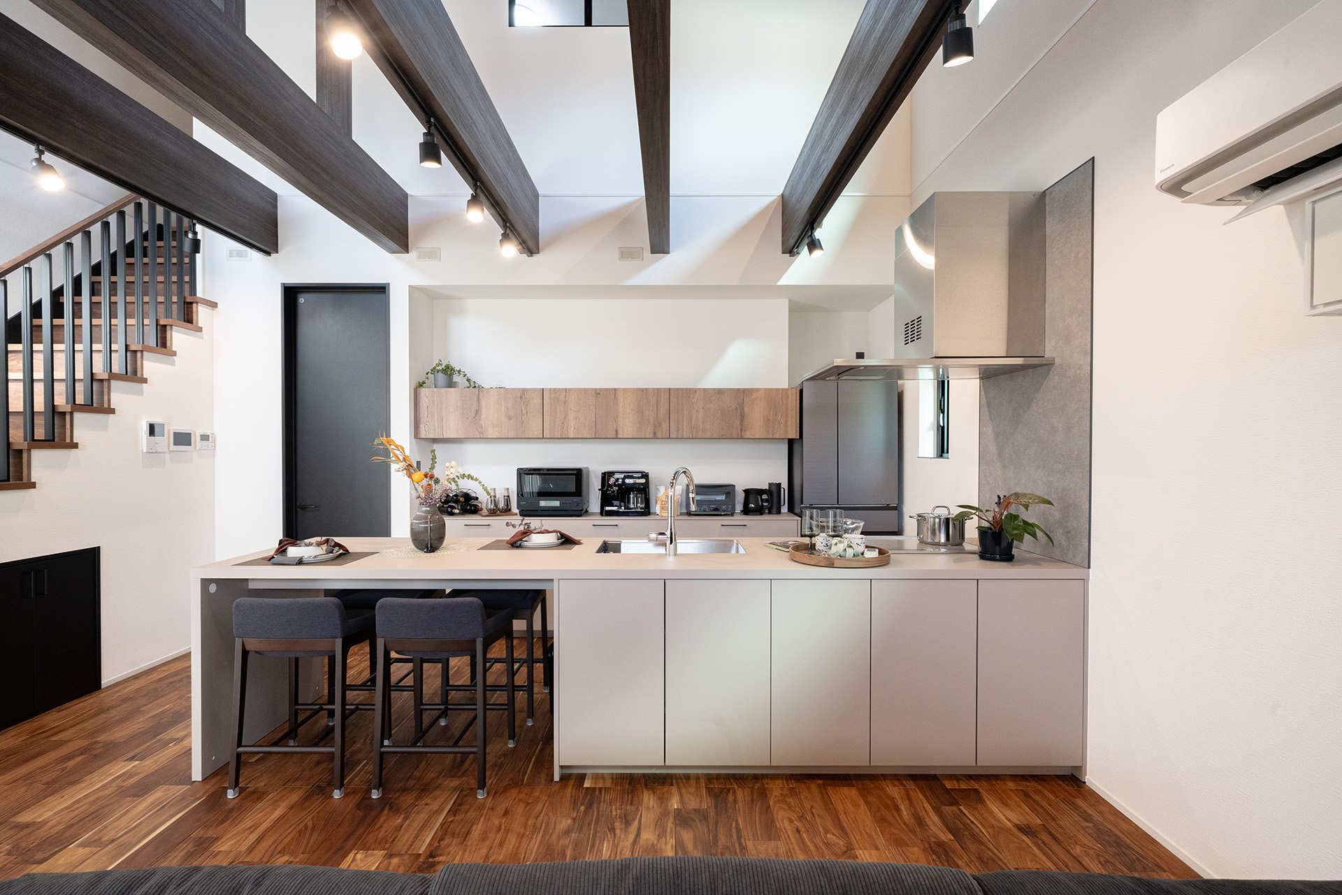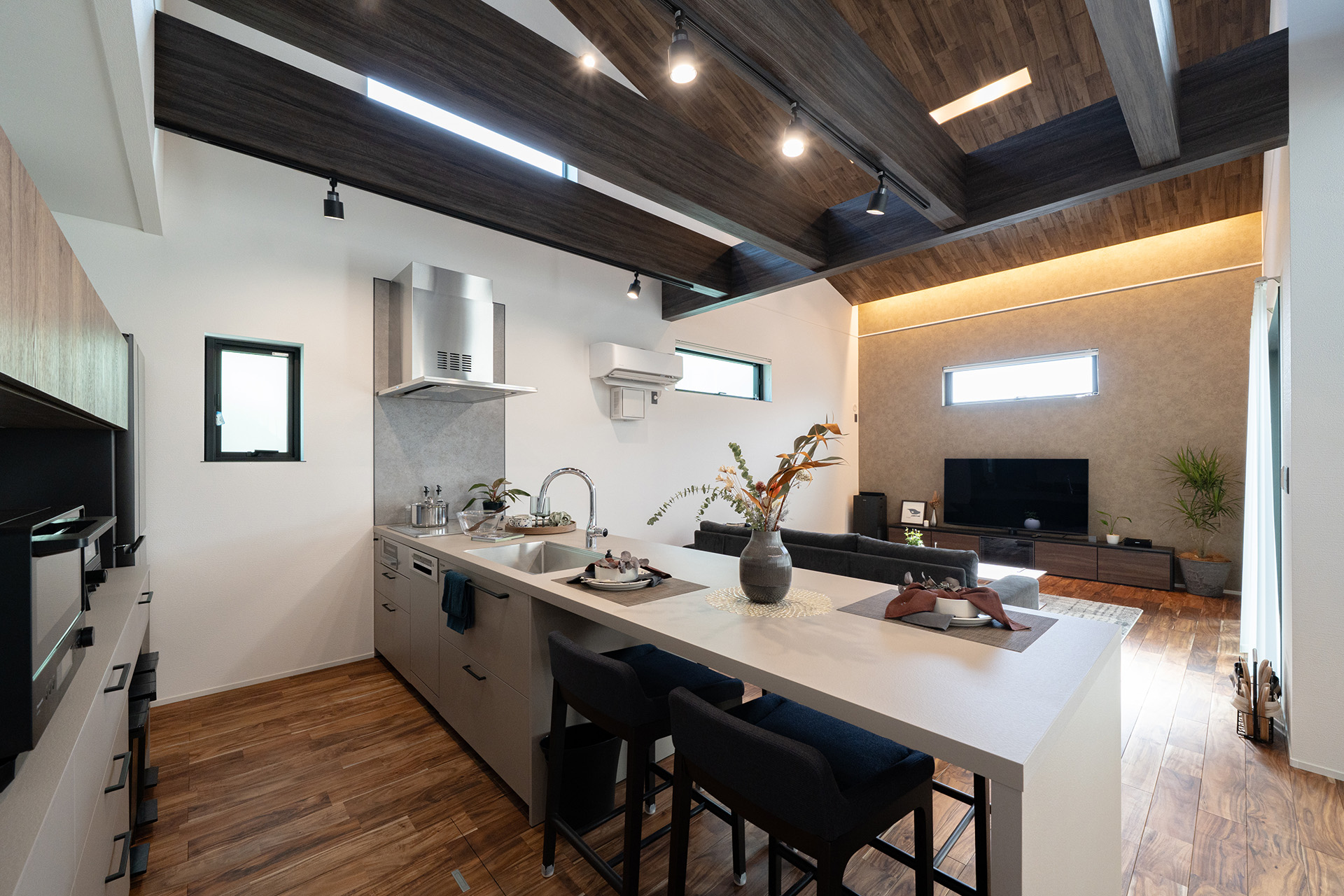 家全体が一年中快適な温度に保たれる、省エネ性能に優れたモデルハウスです。さらに9.00kWの大容量太陽光発電が日中の電力を賢くまかないます。吹き抜けが生む開放感と、光があふれる空間をぜひご体感ください。