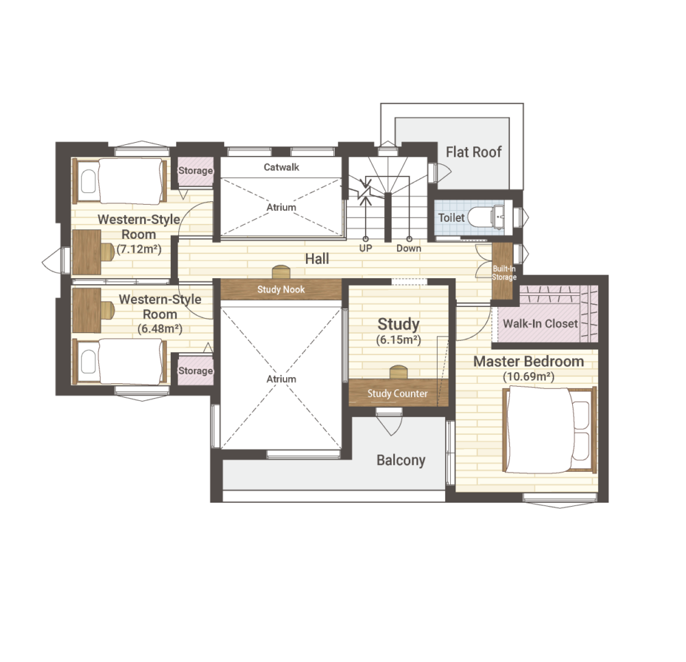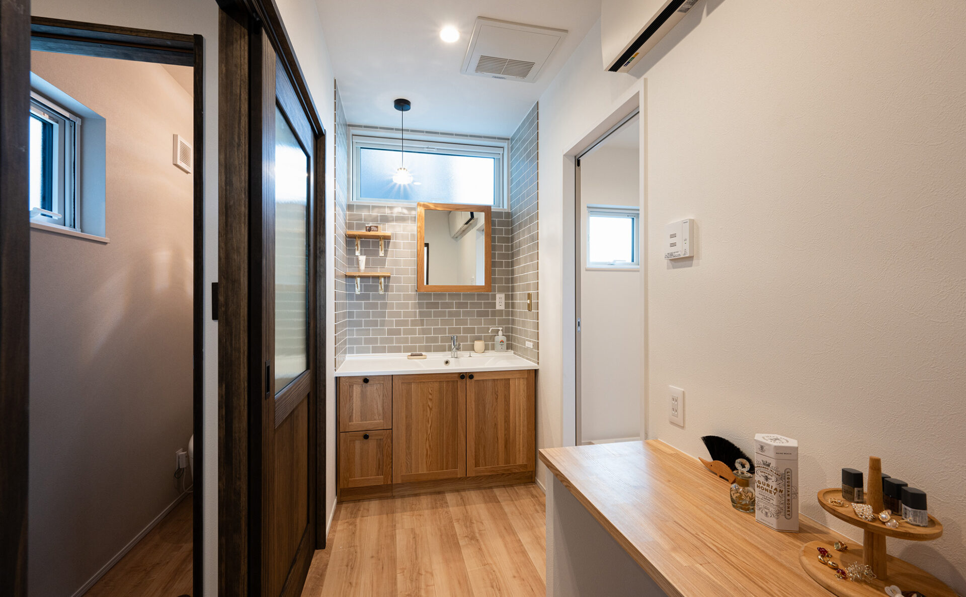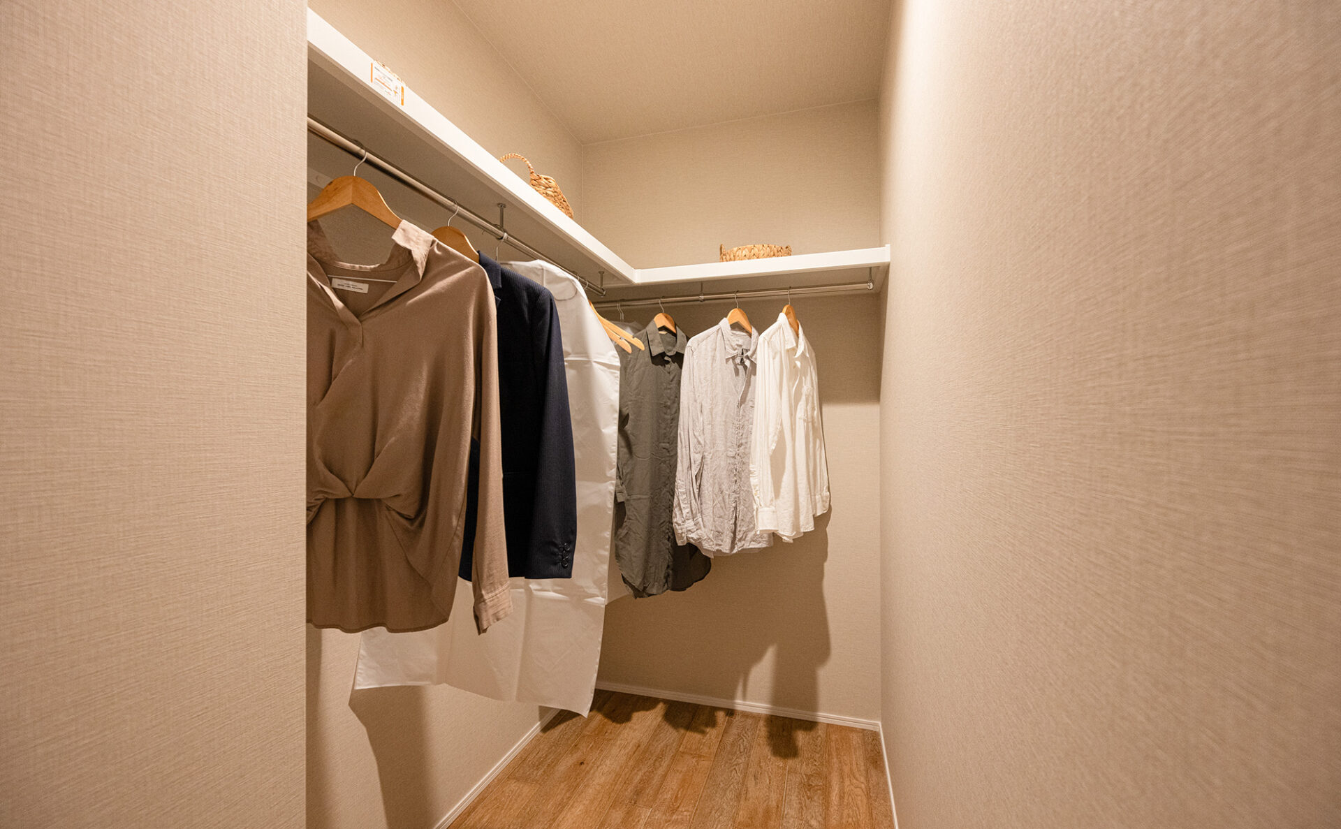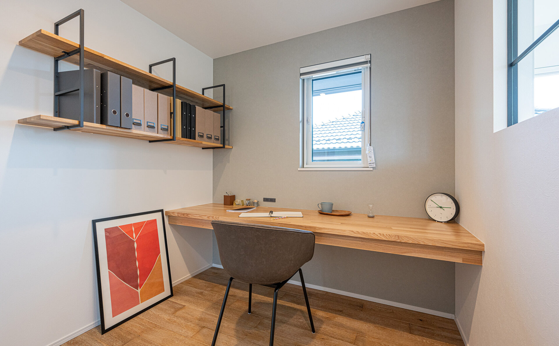 2つの吹き抜けで開放的なLDK、デッキや屋上庭園などの外部空間も備え、家の内外で解放感を感じる住まい。生活に合わせて空間の活用方法を変化させることができるリビングや和室、子ども部屋を採用し、いつまでも暮らしやすい間取りを採用しました。全館空調エアフローシステムや空気清浄システムのトルネックスを搭載し、家全体が快適。また、6.0kWの太陽光発電システムも採用しています。