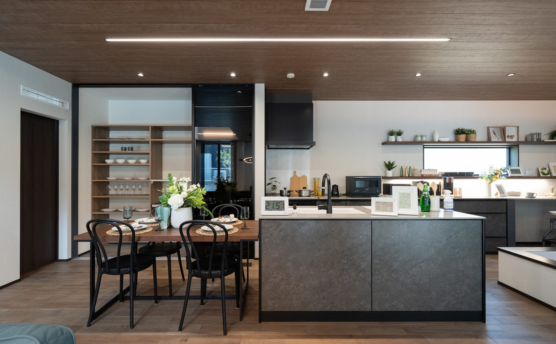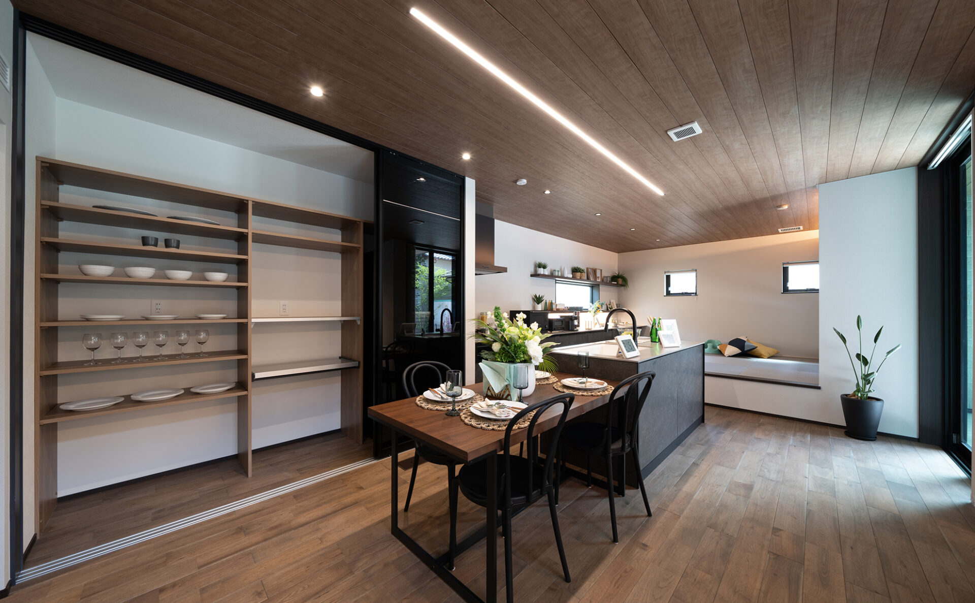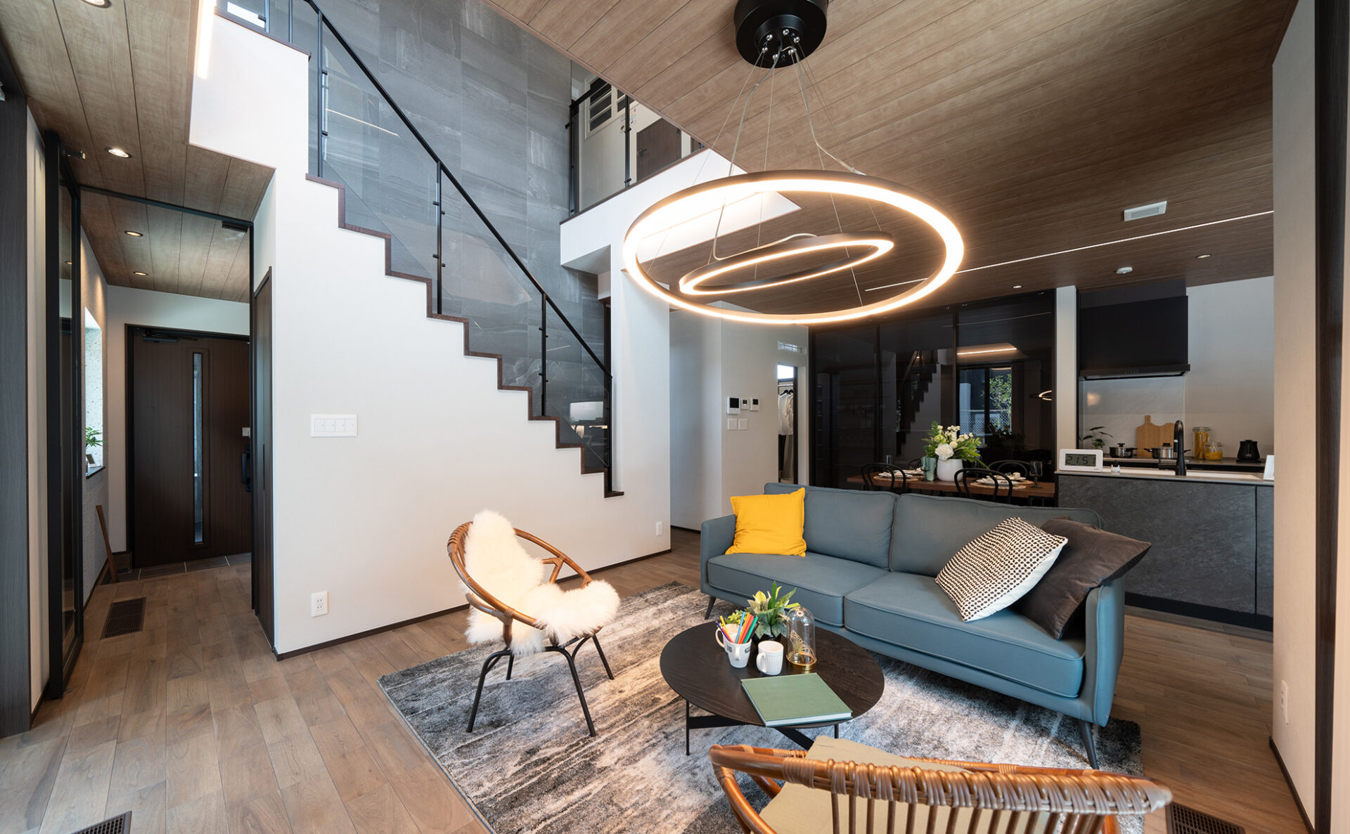 広い敷地を活かしたモデルハウスは、家の内外が自然とつながる間取りが目を惹く住まい。デッキテラスやスカイバルコニーなどアウトドア空間が満載です。2階には、子ども部屋や書斎、主寝室、バルコニーも設けました。太陽光発電システムを7.5kW搭載し、家計と地球にやさしい住宅を実現しました。YUCACOシステムで年中快適にお過ごしいただけます。