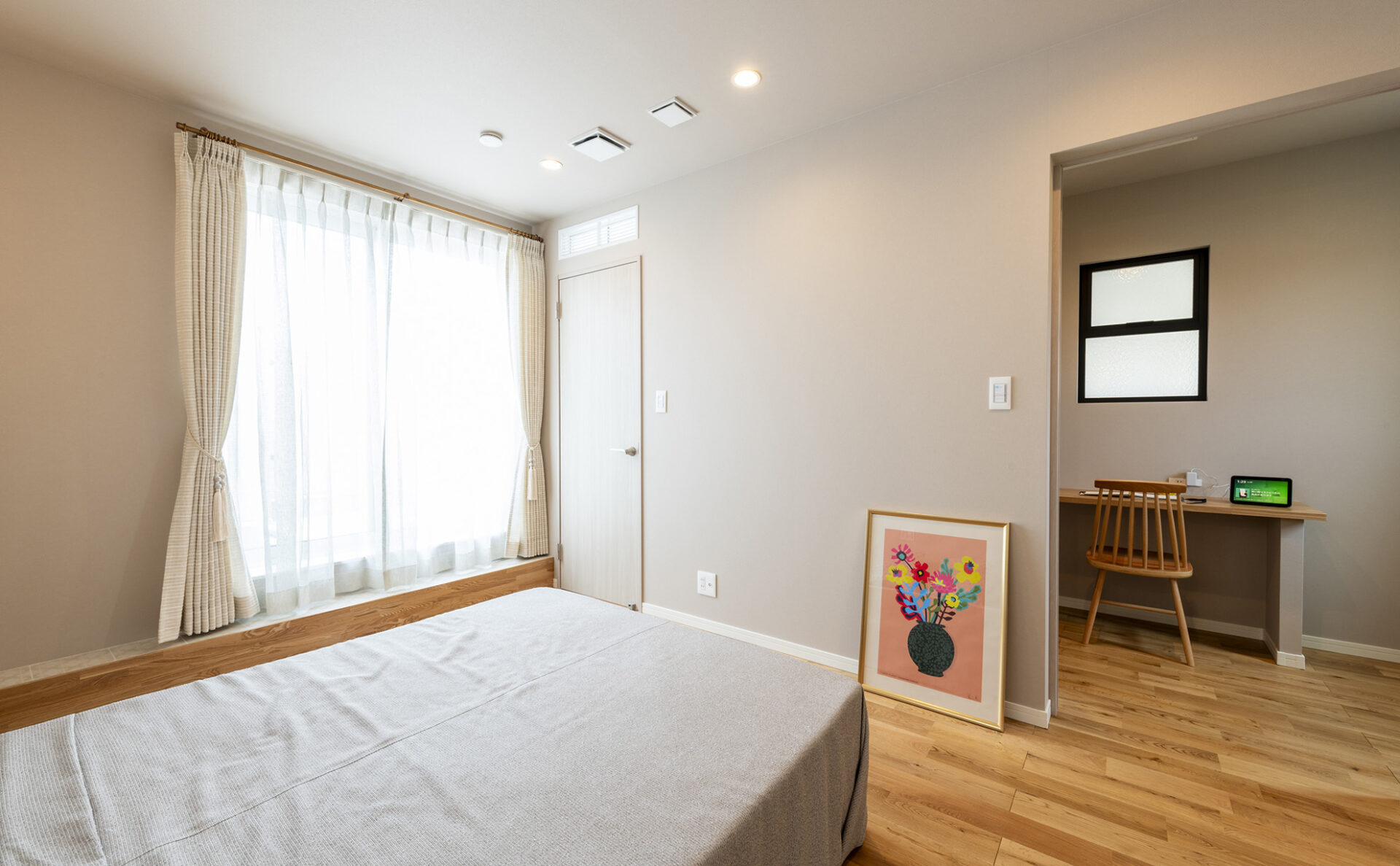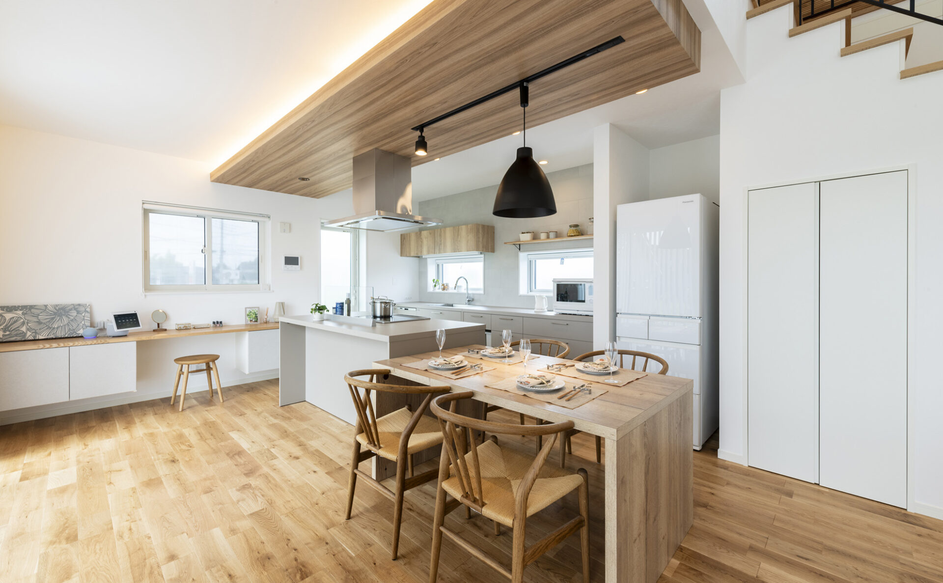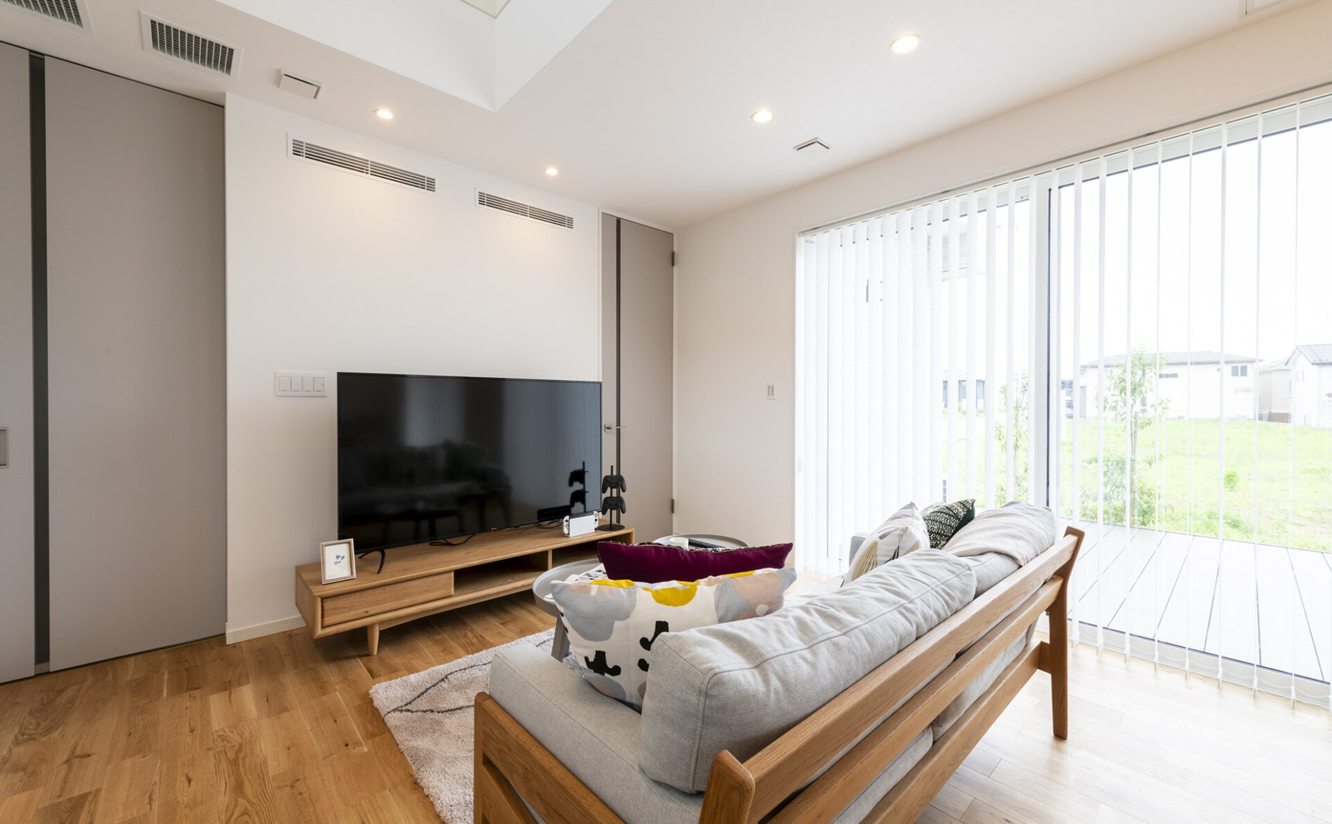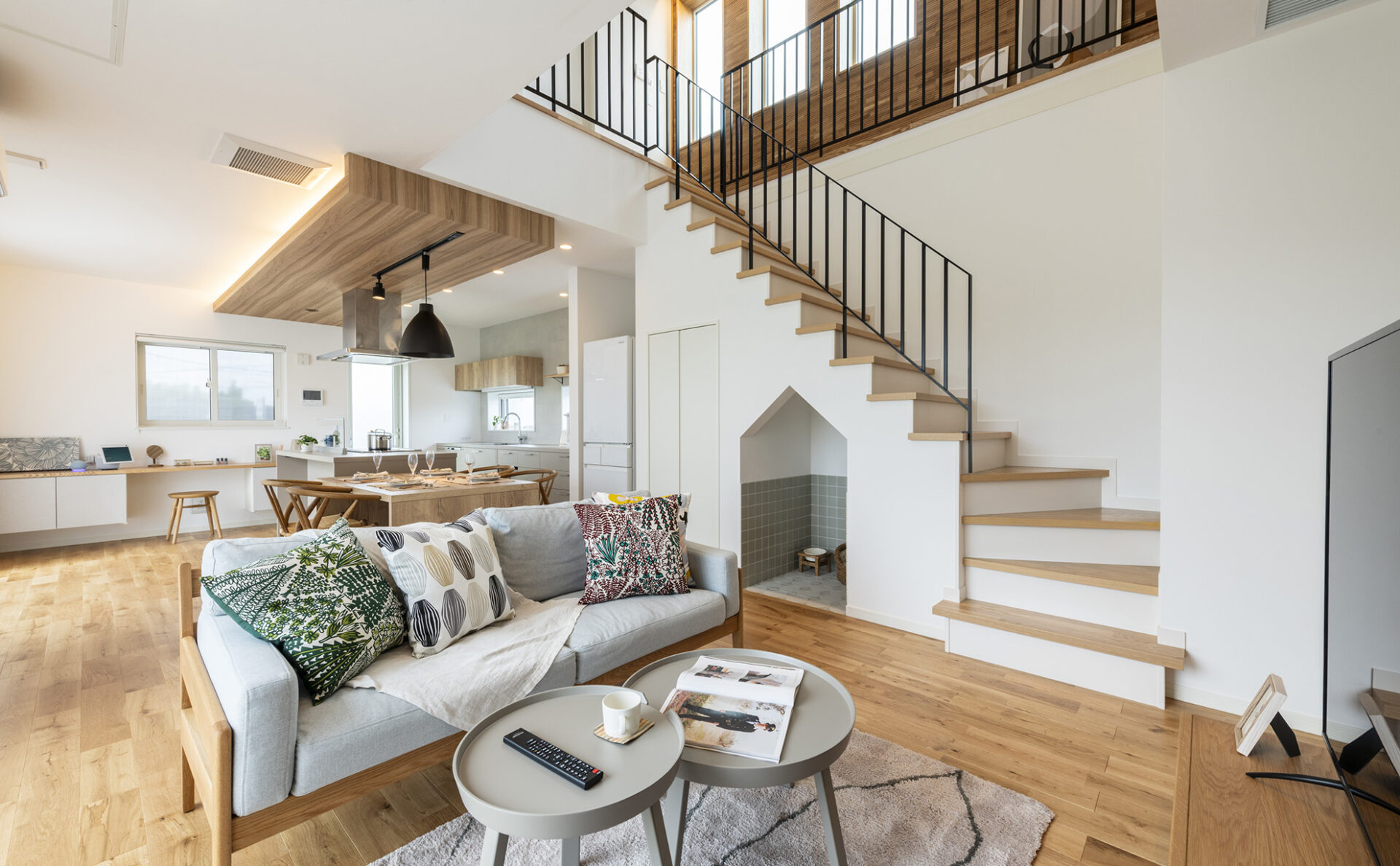 閑静なエリアに建つモデルハウスは、高い断熱性能を誇る住み心地に優れた住まい。解放感と快適性を兼ね備え、最高水準の断熱性能を誇ります。リビングと連続したウッドデッキや、バルコニーなどのアウトドア空間も充実しており、風と光を感じる健やかな住まいです。エアフロ―システムを搭載し、家全体が快適。9.0kWの太陽光パネルを採用し家計と地球にやさしい住まいです。