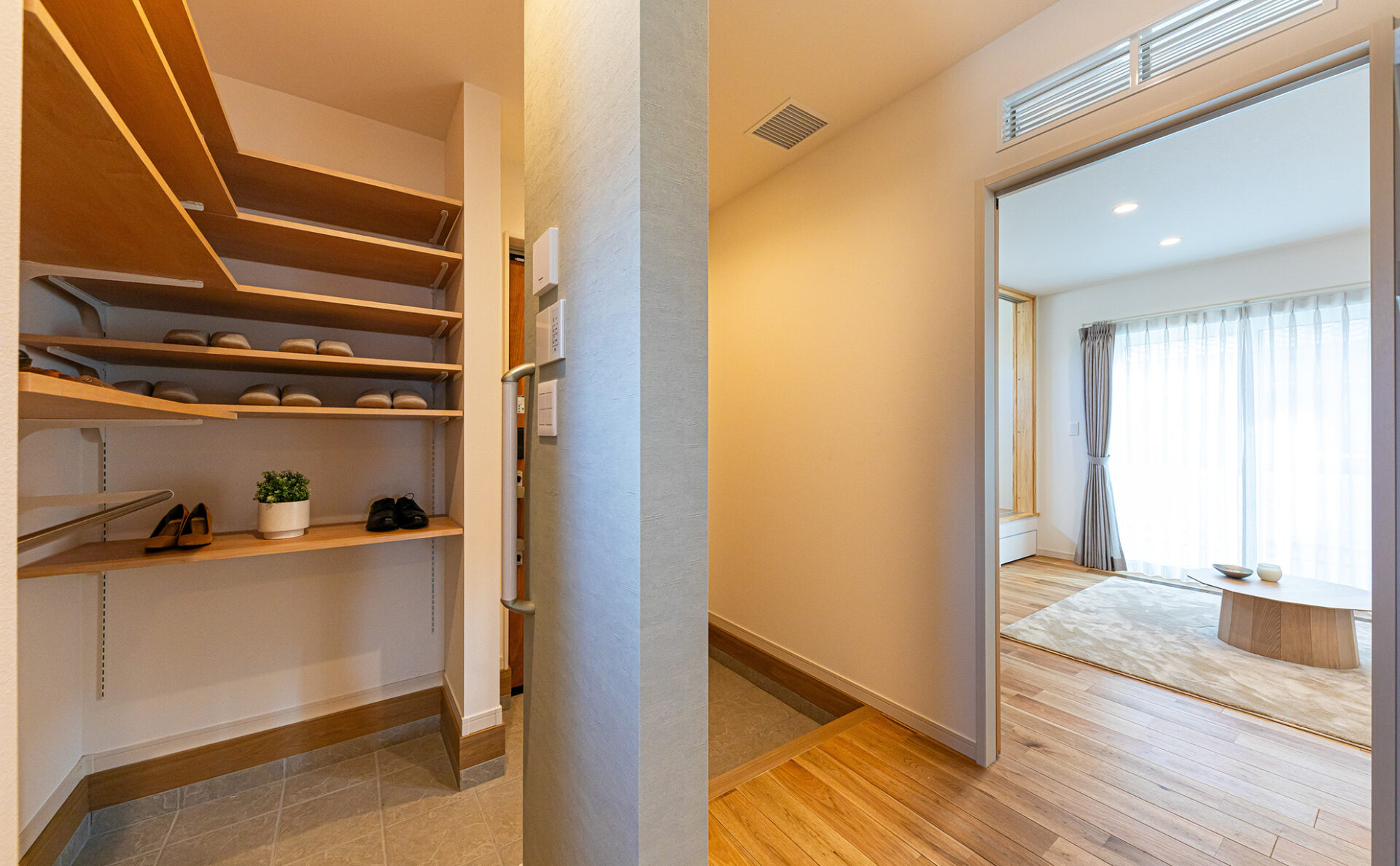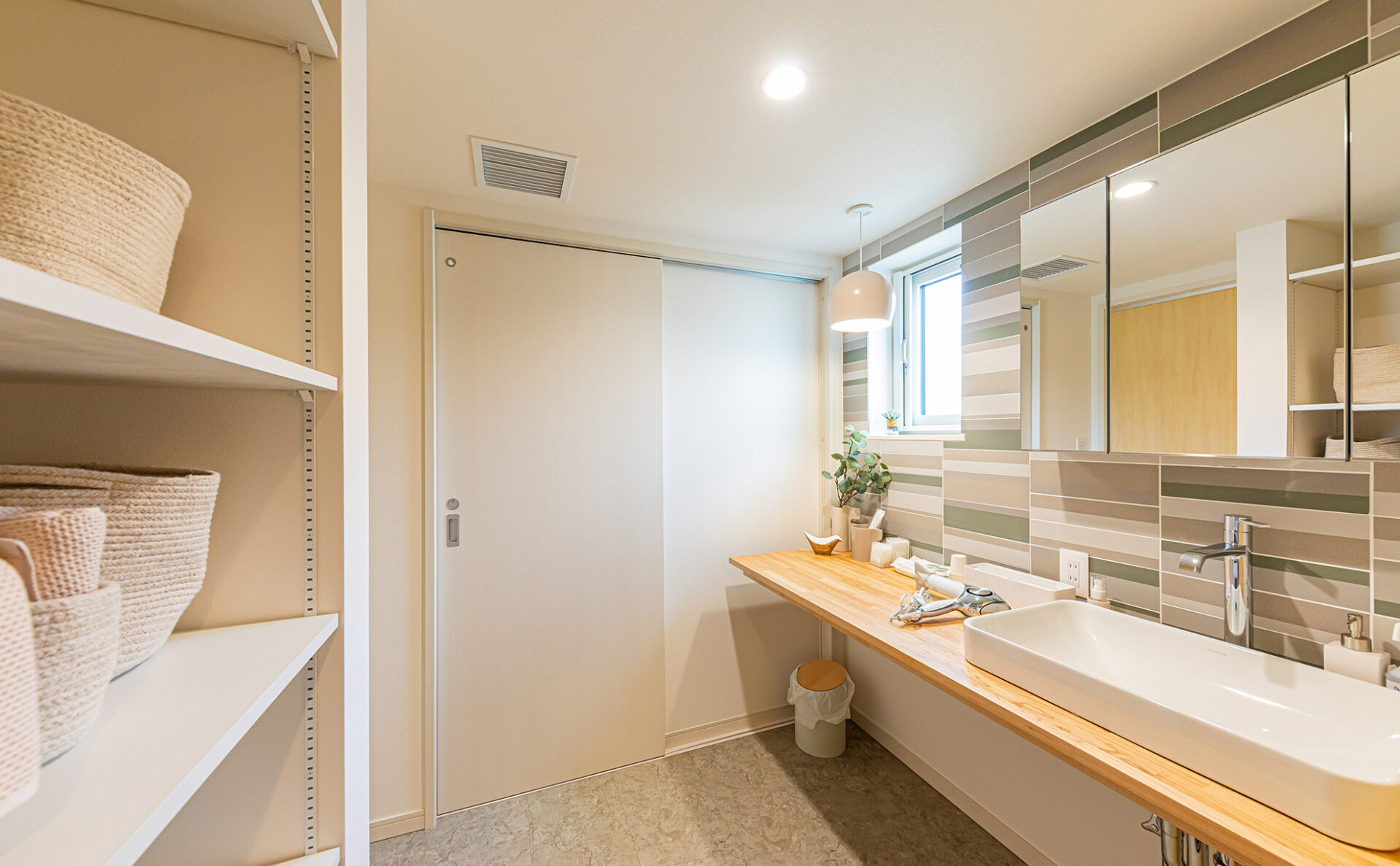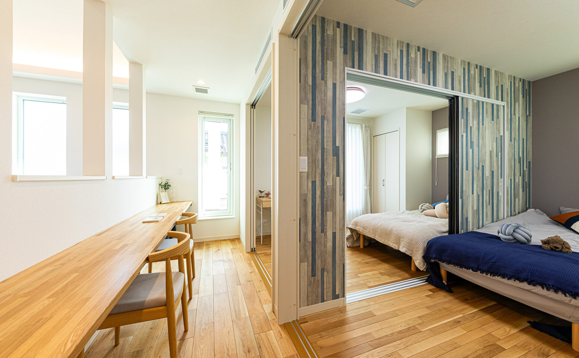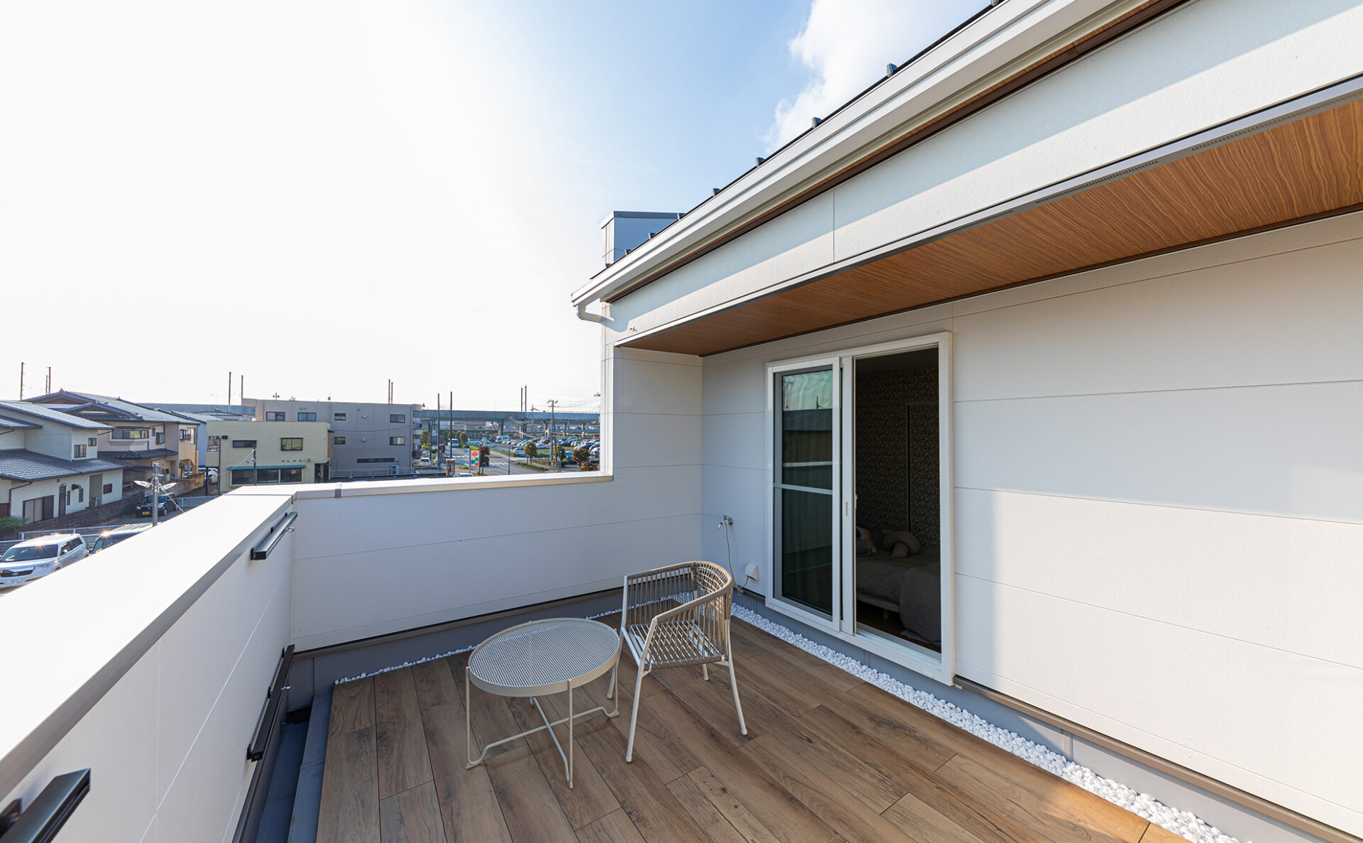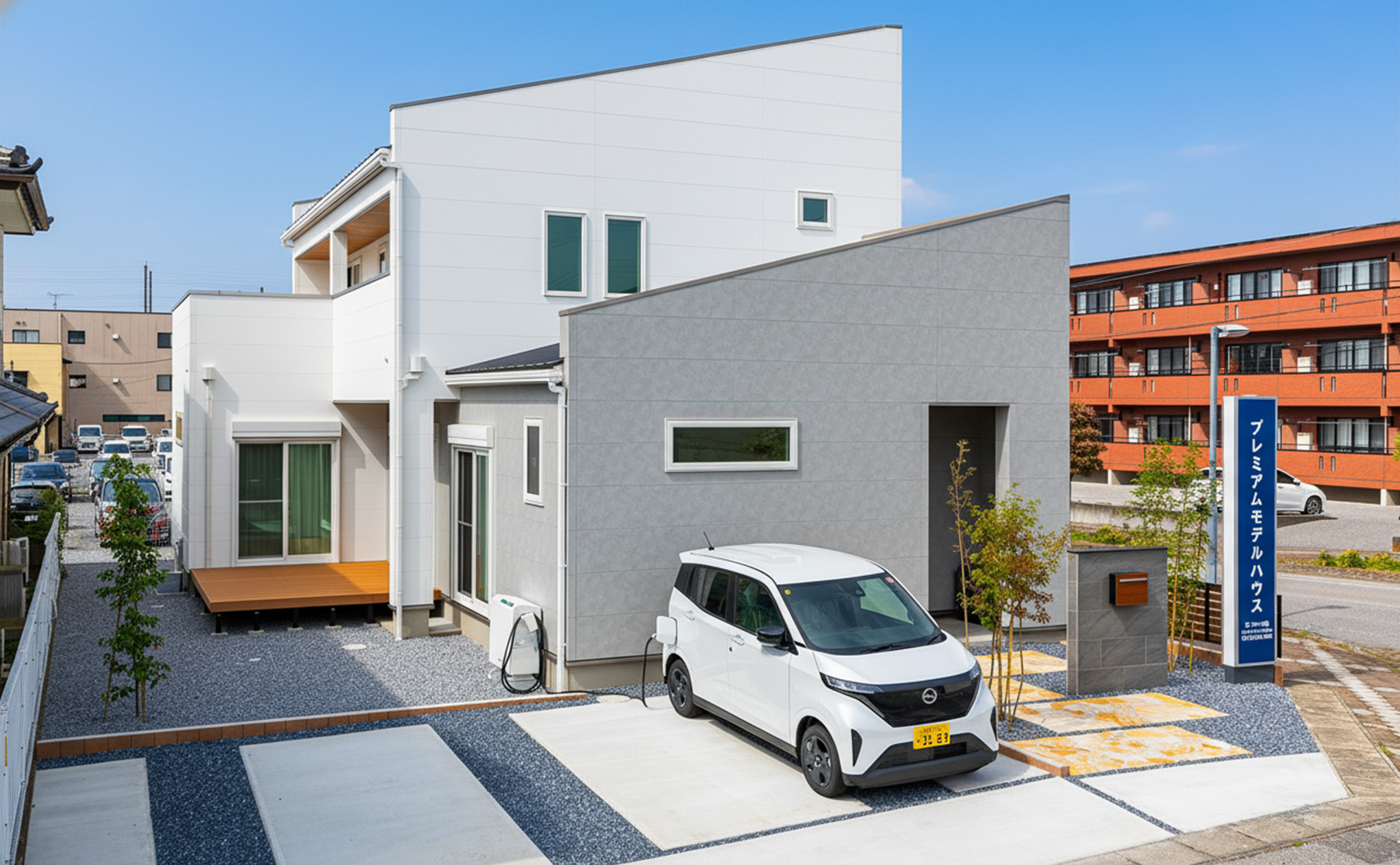 リビング階段や吹き抜けによる立体的な空間で、お互いの気配を感じるモデルハウス。