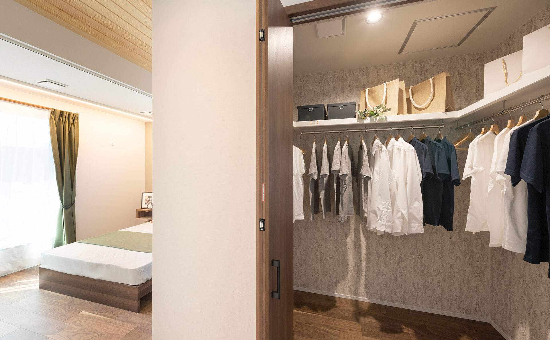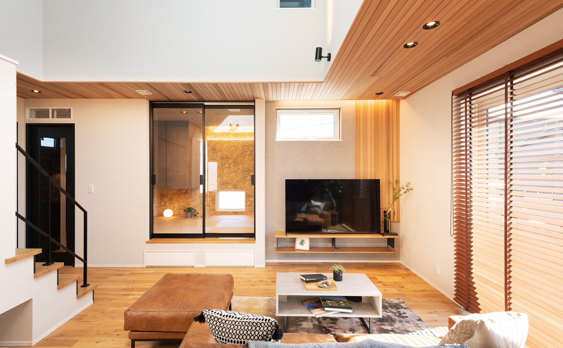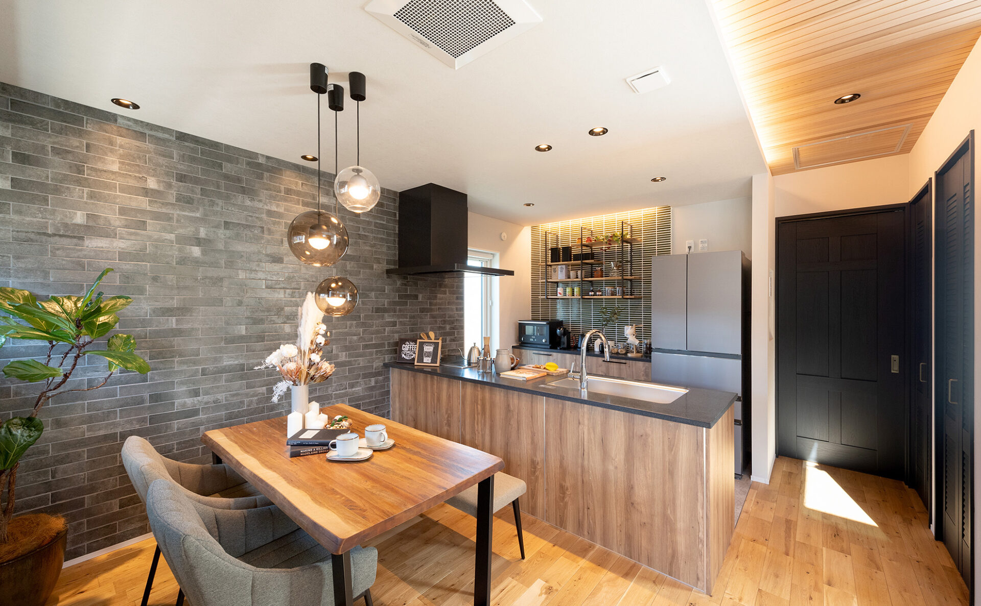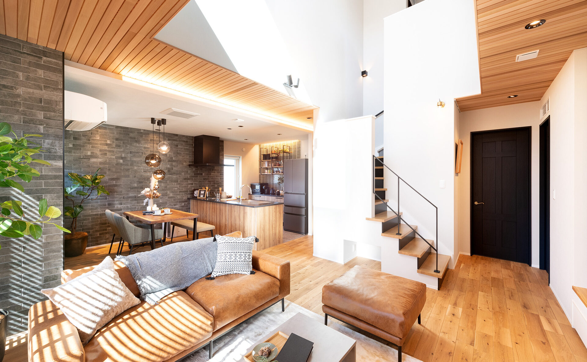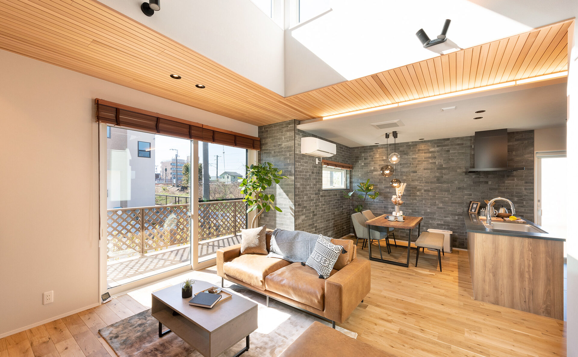 明るく広々としたLDK、無垢材の床が心地よい住まい。みんなで料理ができるキッチン、リビングから繋がるウッドデッキやバルコニーでアウトドアなど家族時間を楽しめます。手洗いの習慣が身につく玄関の洗面や、洗面室のファミリークローゼットなど、家族が快適に過ごせるアイデアが満載です。室内空気循環システム(エアフローシステム)を採用したモデルハウスです。