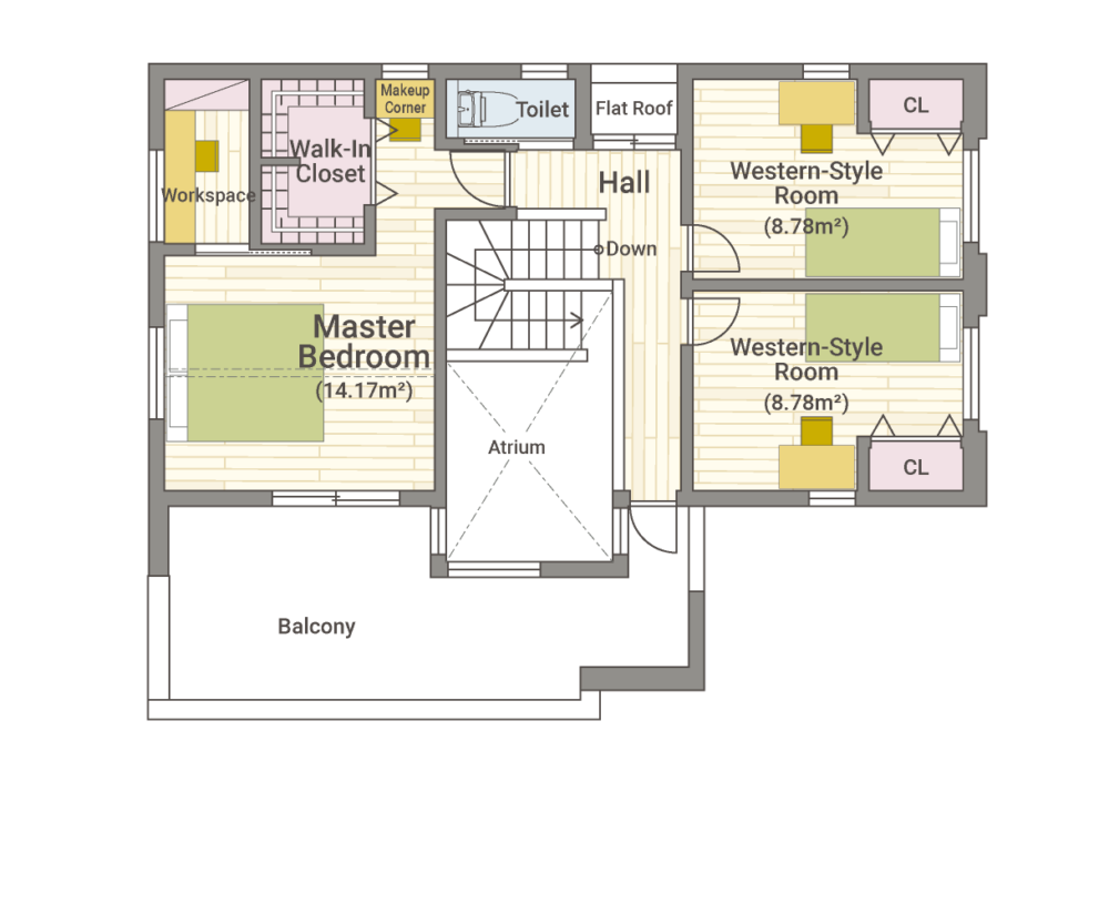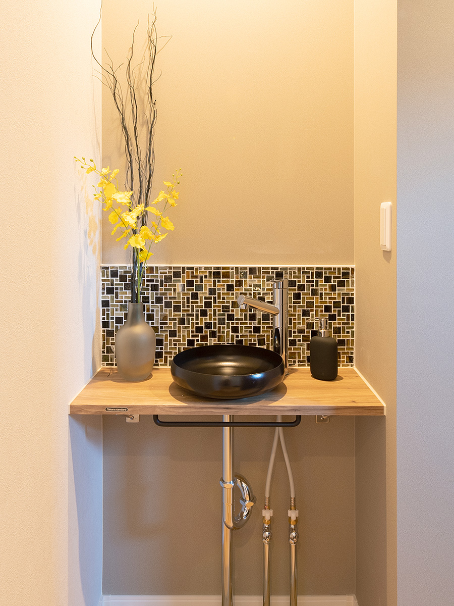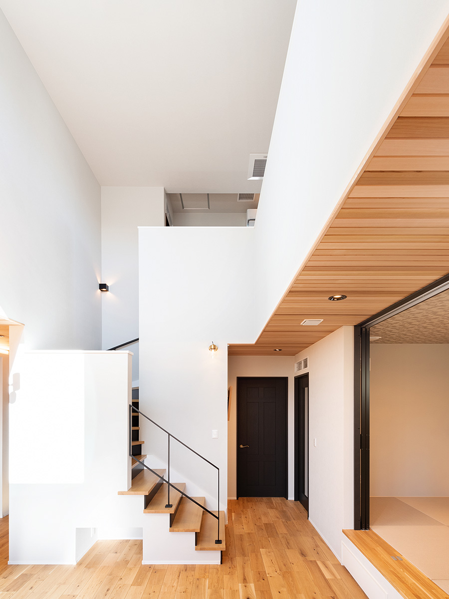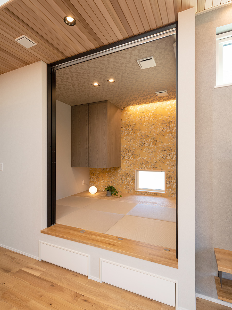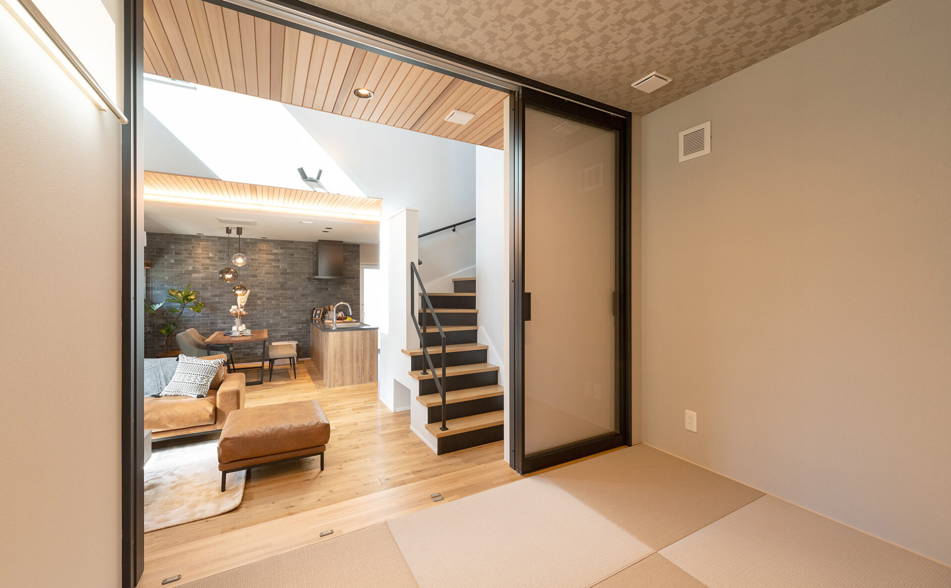 明るく広々としたLDK、無垢材の床が心地よい住まい。みんなで料理ができるキッチン、リビングから繋がるウッドデッキやバルコニーでアウトドアなど家族時間を楽しめます。手洗いの習慣が身につく玄関の洗面や、洗面室のファミリークローゼットなど、家族が快適に過ごせるアイデアが満載です。室内空気循環システム(エアフローシステム)を採用したモデルハウスです。