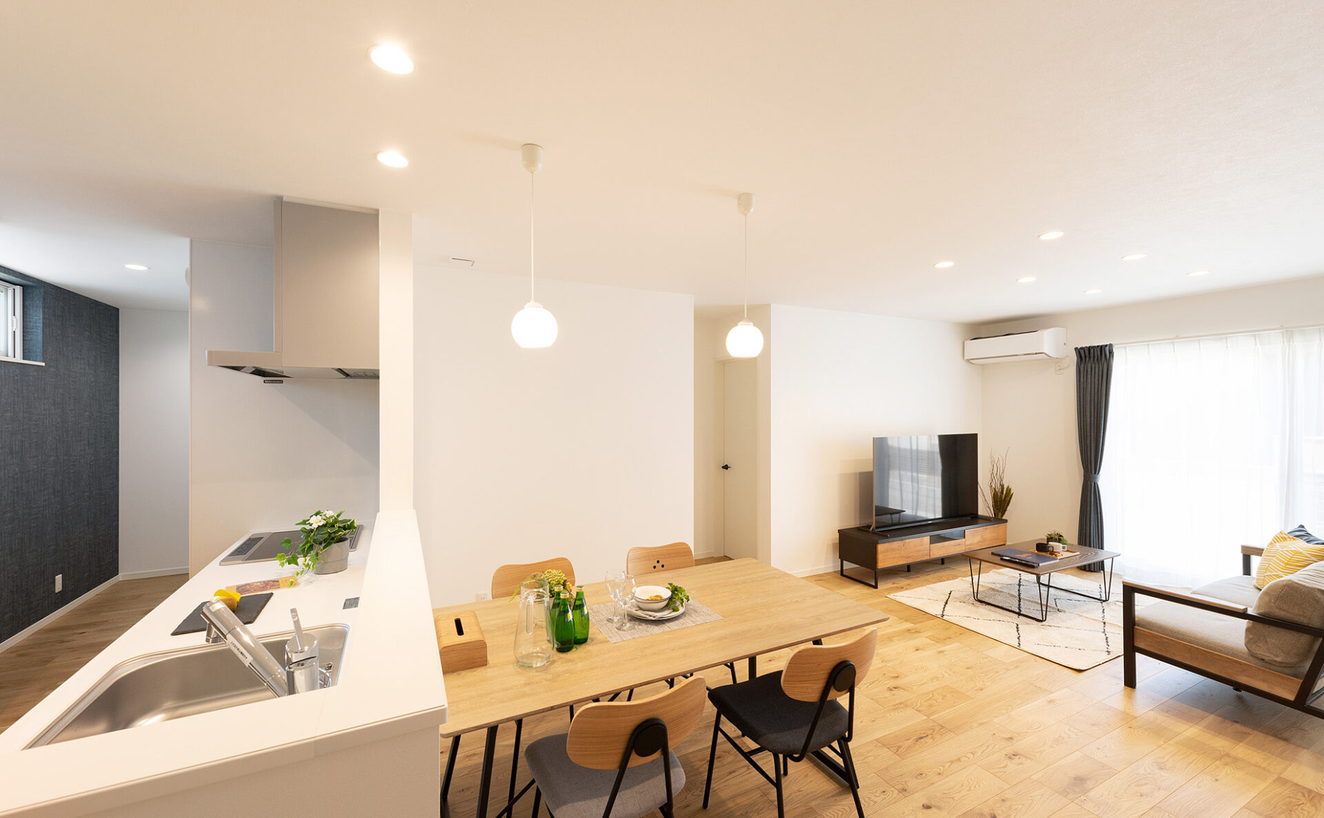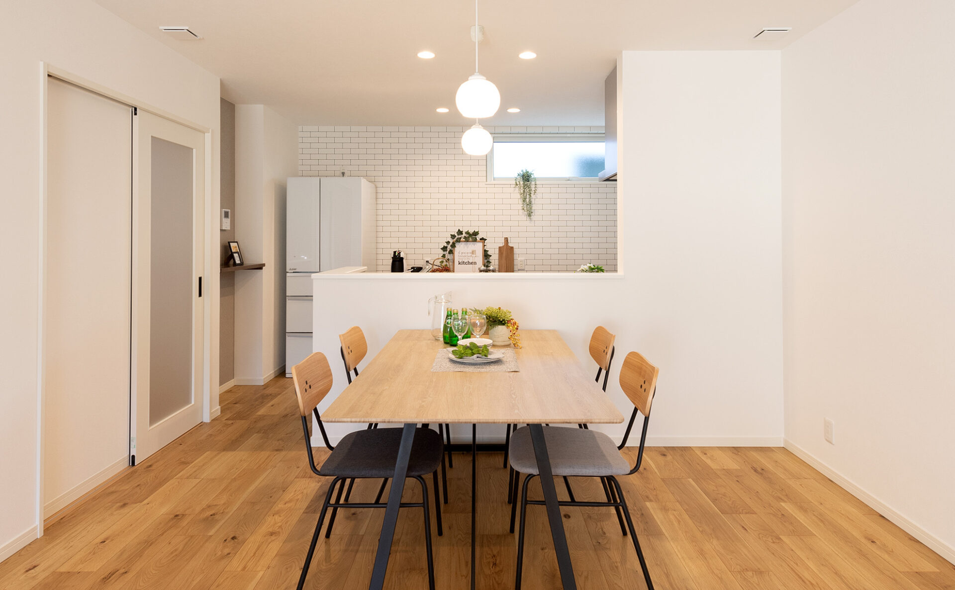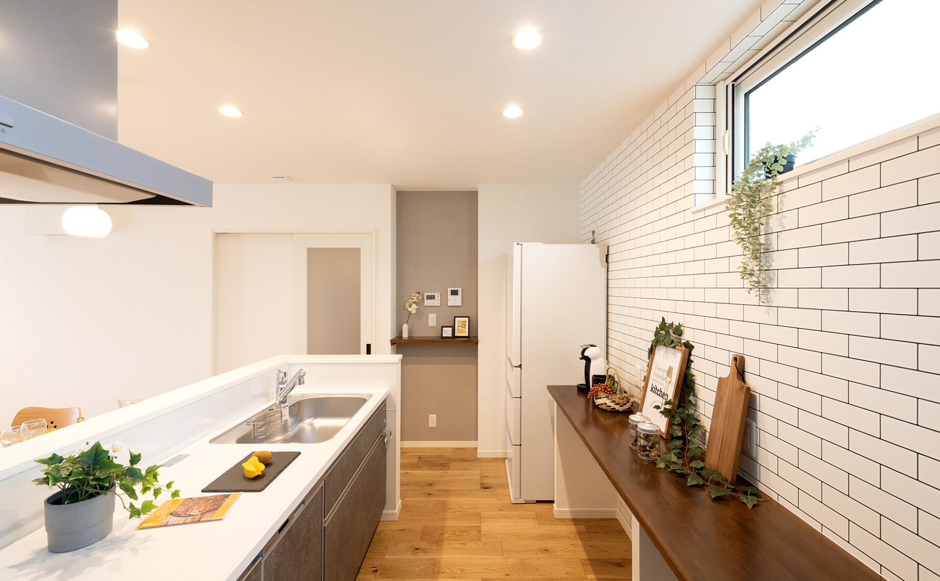 広々とした20帖を越えるLDK、家族の会話が弾むオープンなキッチン。動線がラクになる平屋の住まいは子どもが独立したあとも夫婦がゆったりと暮らせます。食材や生活用品を収納できる広めのパントリー、細々したものを整理できる玄関ホールの収納スペースなど、コンパクトでありながら収納にこだわりました。平屋ならではの暮らし提案が満載です。
