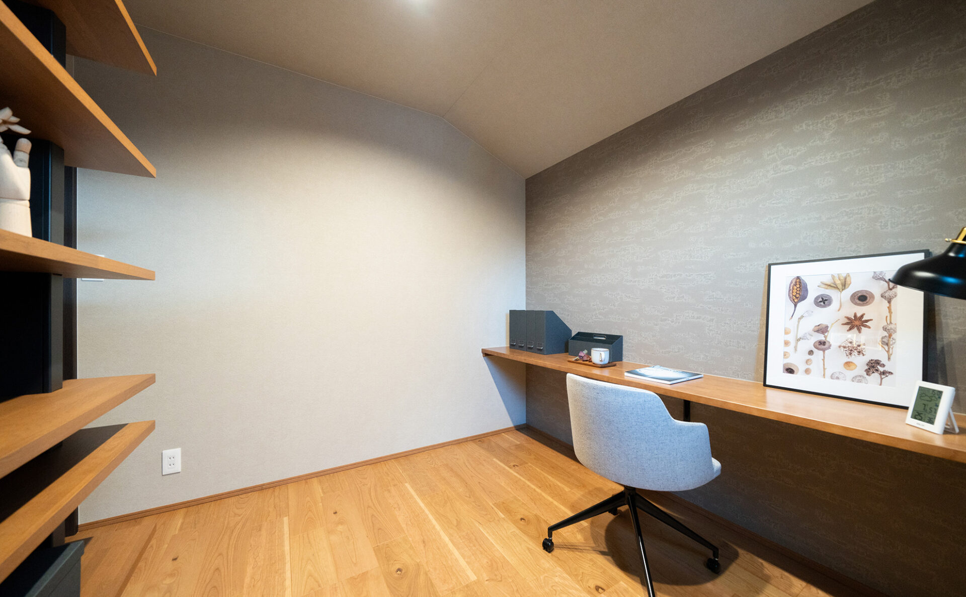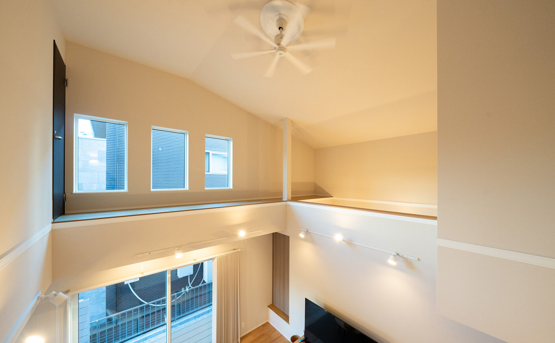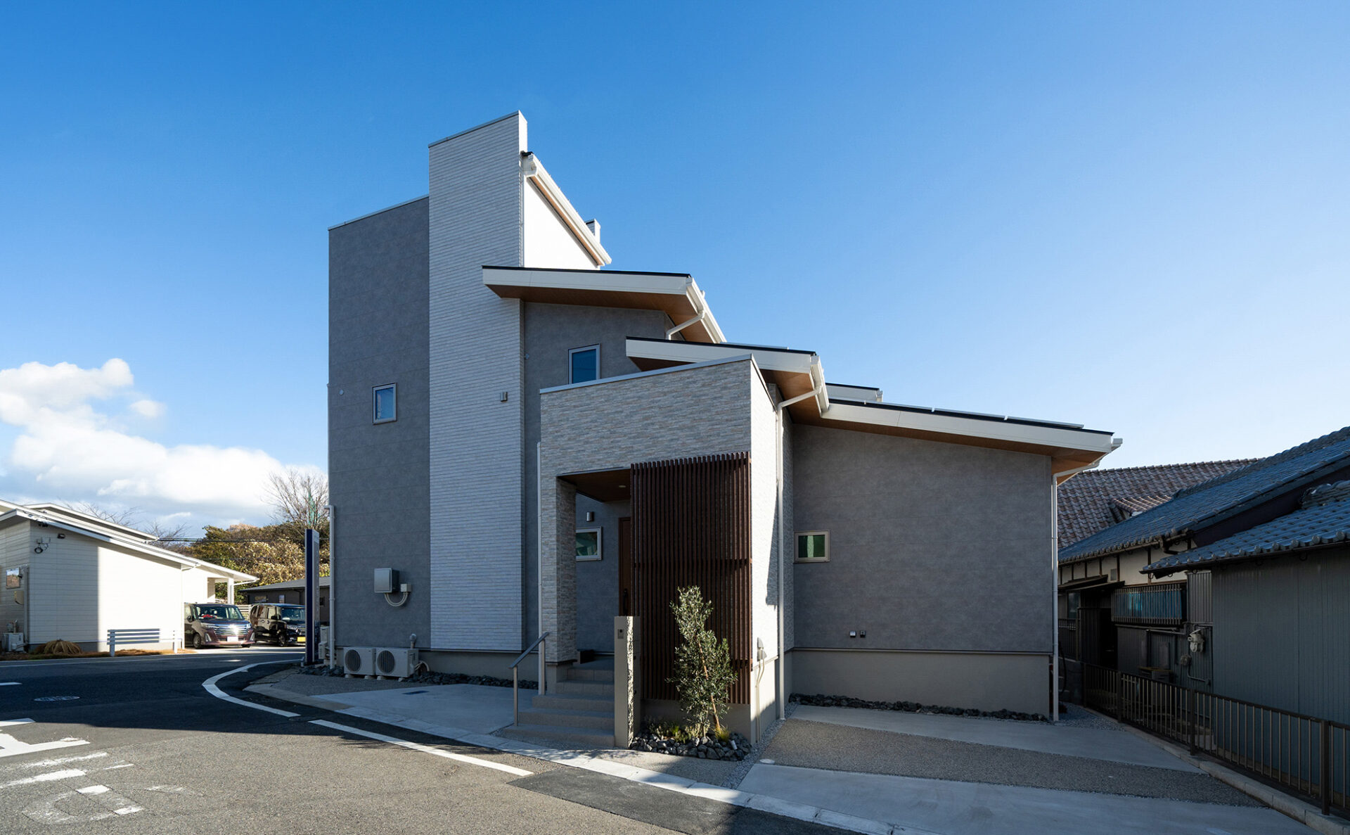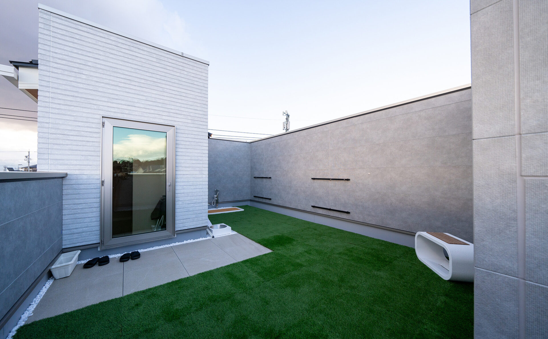 開放的な吹き抜けのLDKに加えて、ウッドデッキや屋上庭園など多彩なアウトドア空間が魅力のモデルハウス。アウトドア空間を通じて内外が繋がることで、暮らしが外へ広がる住まいとなりました。太陽光パネルを約8.25kw搭載しており、家計に優しい暮らしを実現できます。また、全館空調システム「エコエアファイン」を搭載しており年中快適にお過ごしいただけます。