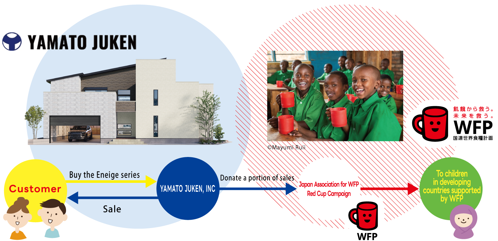 注文住宅を手がけるハウスメーカーのヤマト住建株式会社(本社:兵庫県神戸市、代表取締役:河本 佳樹、以後「ヤマト住建」)は、注文住宅「エネージュ」シリーズの売上の一部を認定NPO法人国連WFP協会に寄付し、発展途上国の子どもたちの学校給食支援に取り組みます。